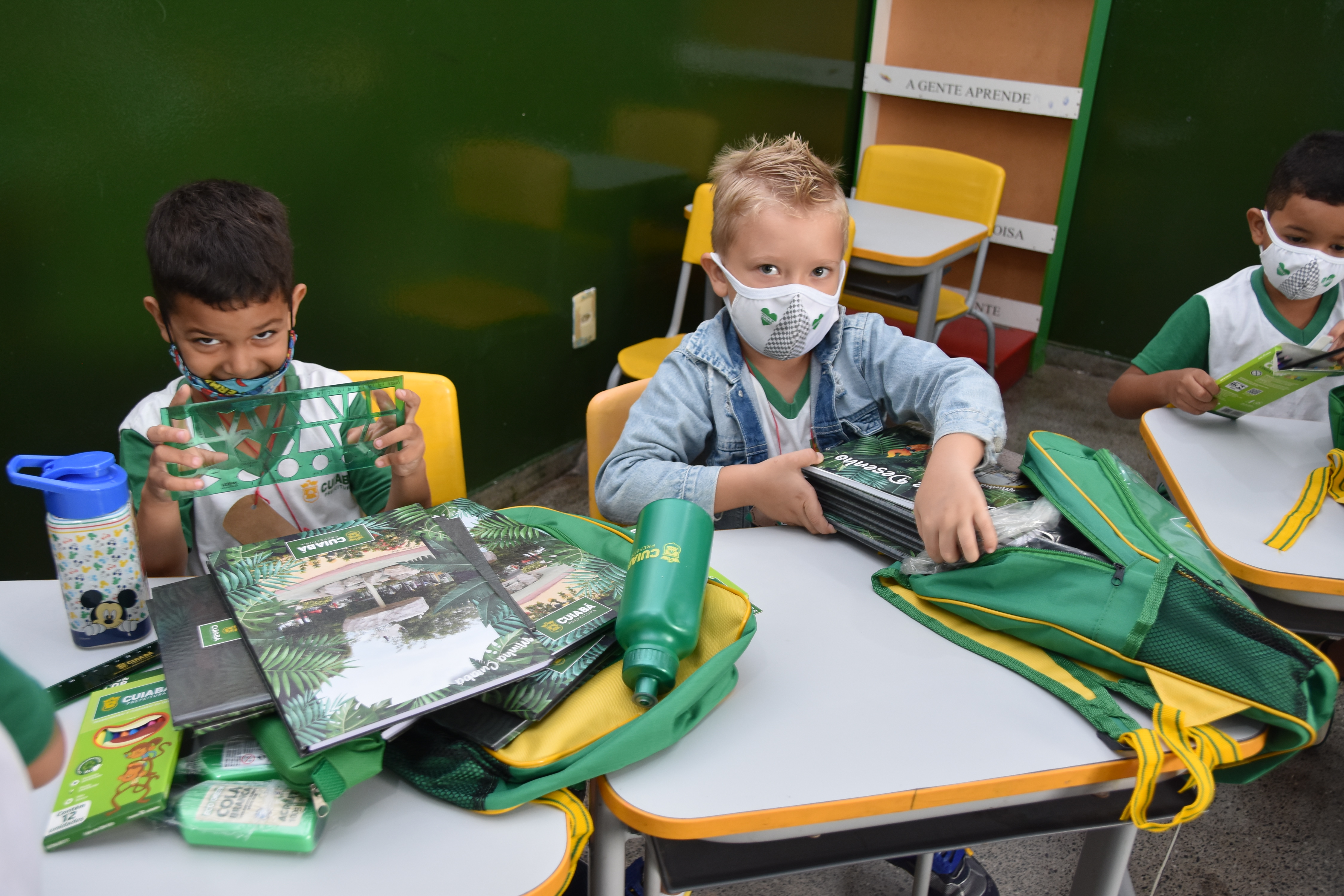 Os estudantes não continham a alegria de rever amigos e professores e, foram surpreendidos com a entrega do Kit Escolar. Para João Gabriel, Teresa e Bruno a surpresa de receber os cadernos, lápis, borracha, apontador, régua, lápis de cor, a garrafinha de água, mochila, superou qualquer ansiedade.