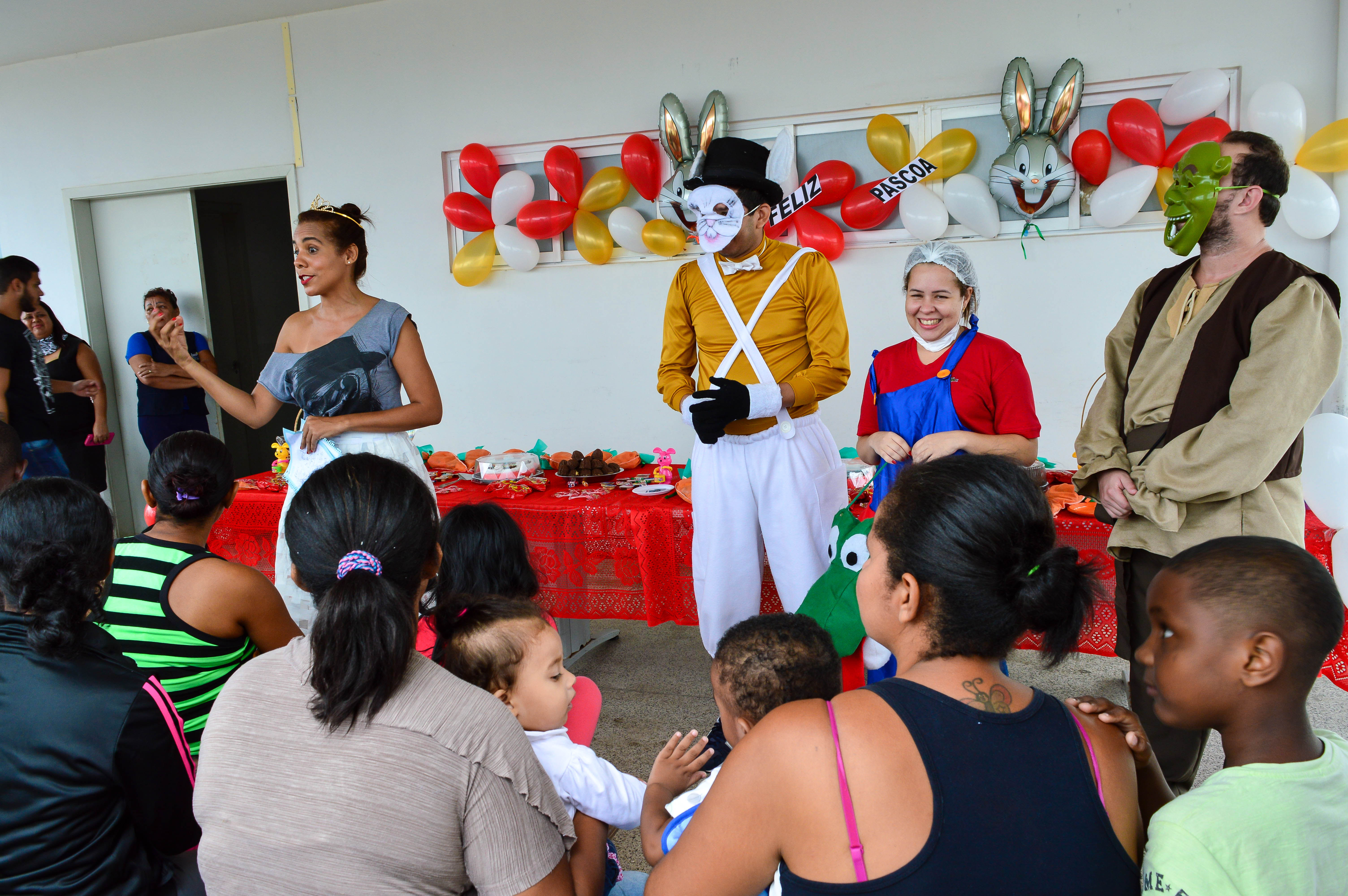 A equipe gestora da Unidade de Pronto Atendimento 24 Horas (UPA), do bairro Morada do Ouro acompanhada do grupo multiprofissional que compõem a unidade, realizaram na véspera do feriado prolongado (28.03), uma grande ação de páscoa com direito a muitas guloseimas como bolo, chocolates, brindes e história encantada escrita e encenada exclusivamente para o evento. A literatura, que contou o drama de um pequeno dragão solitário que sofria de alergia e ao espirrar transformava tudo pela frente em cinzas, encantou crianças e pais e demonstrou, por meio dos personagens coelho (que era médico) e ogro (amigo do dragão), a importância do cuidado médico para manter uma vida saudável.