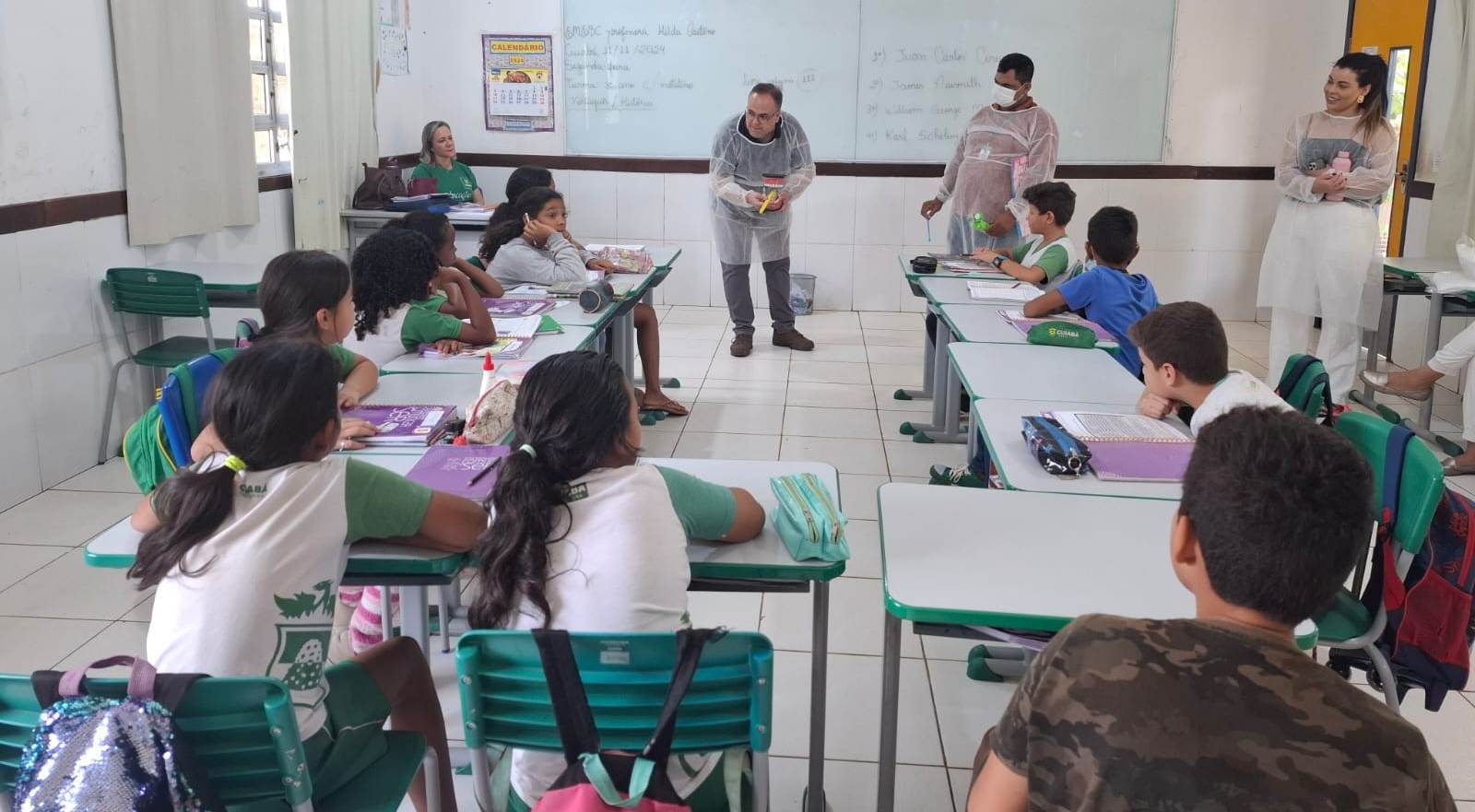 Nos dias 11 e 12 de novembro de 2024, a equipe da USF Sucuri realizou uma ação de saúde bucal na Escola Municipal de Educação Básica e Cidadania (EMEBC) Professora Hilda Caetano de Oliveira Leite. Recepcionados pela diretora da escola, Mariana Gomes da Fonseca Almeida, os profissionais da USF ofereceram atividades educativas e práticas voltadas ao cuidado e à prevenção em saúde bucal para as crianças.