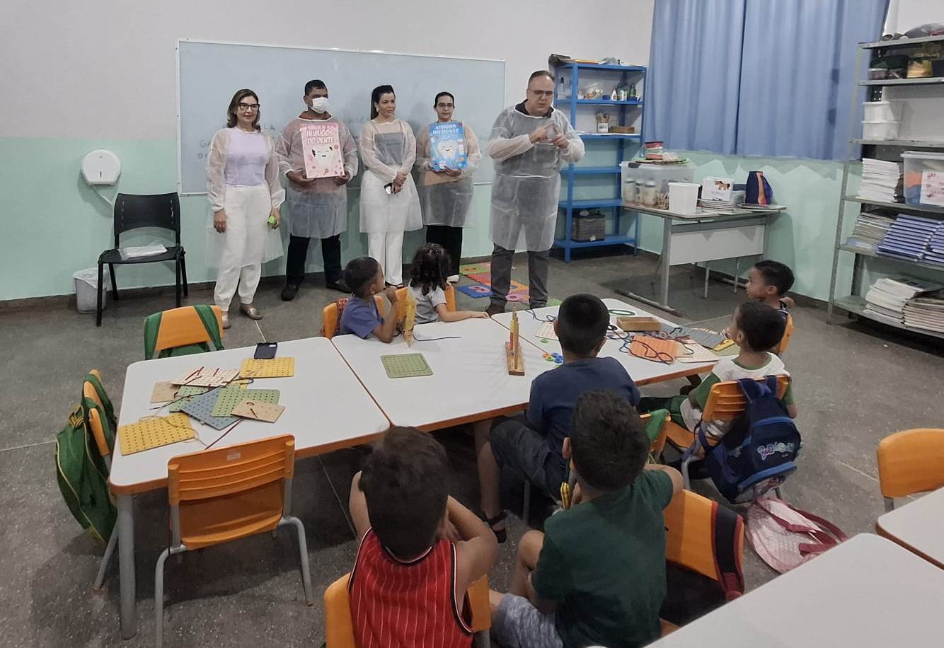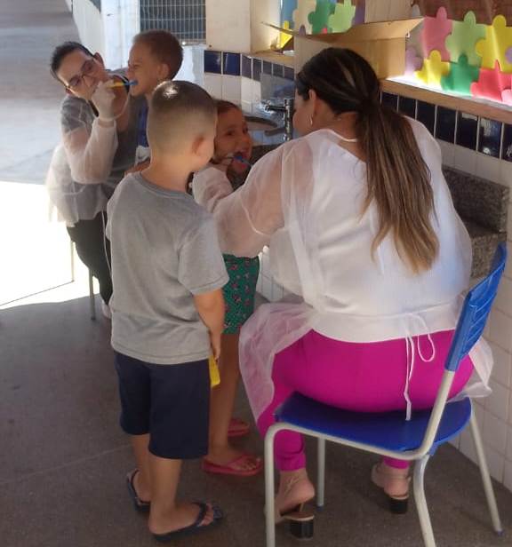 USF Sucuri promove ação de higiene bucal para crianças 350 crianças da EMEBC Prof. Hilda Caetano de Oliveira Leite