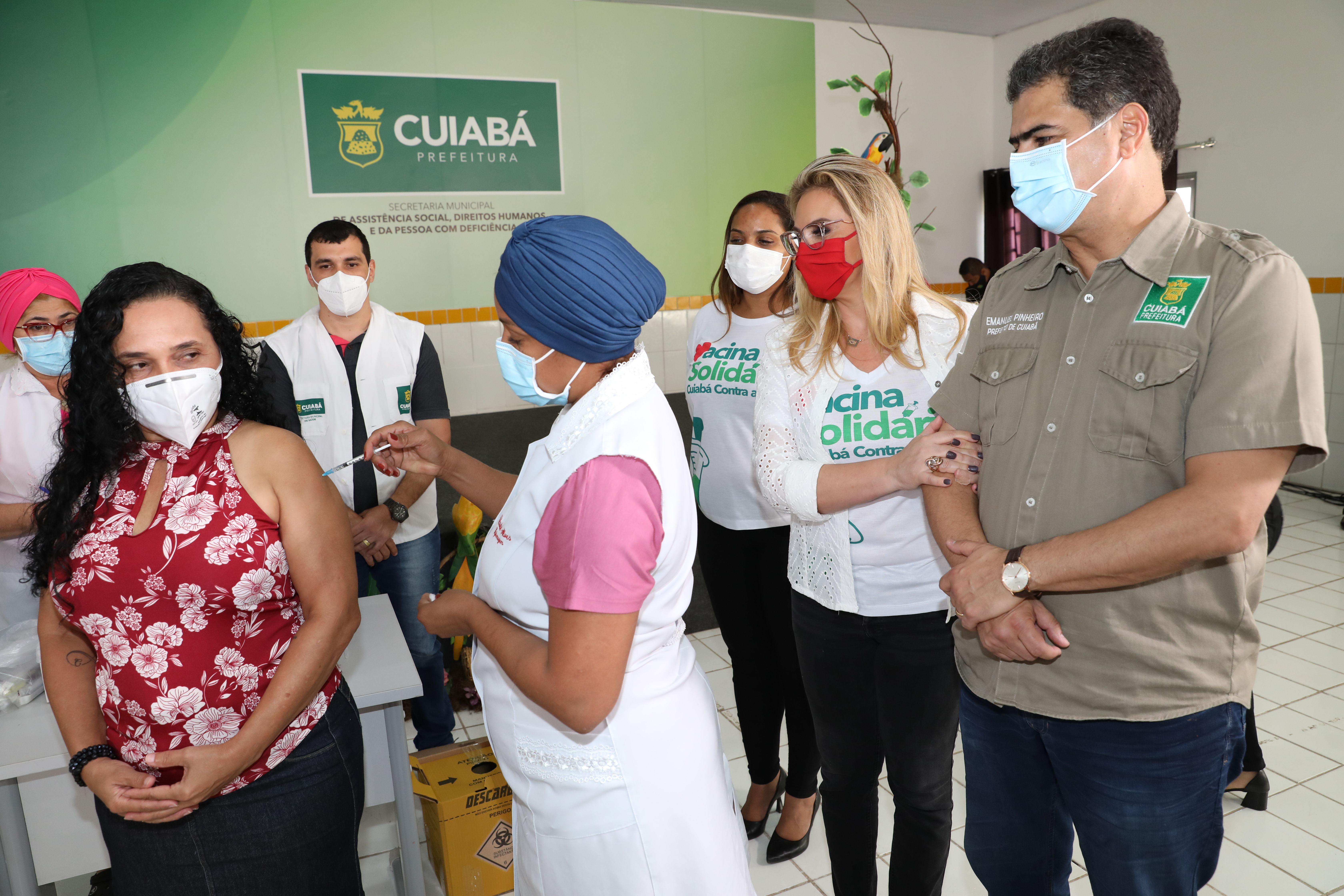 Os 1093 servidores do Sistema Único de Assistência Social (Suas) da Secretaria de Assistência Social, Direitos Humanos e da Pessoa com Deficiência começaram a ser vacinados nesta terça-feira (18), em cerimônia simbólica realizada no auditório da secretaria tendo a presença do prefeito Emanuel Pinheiro e da primeira-dama Márcia Pinheiro, principal articuladora da inclusão da categoria no grupo prioritário para imunização, no local.