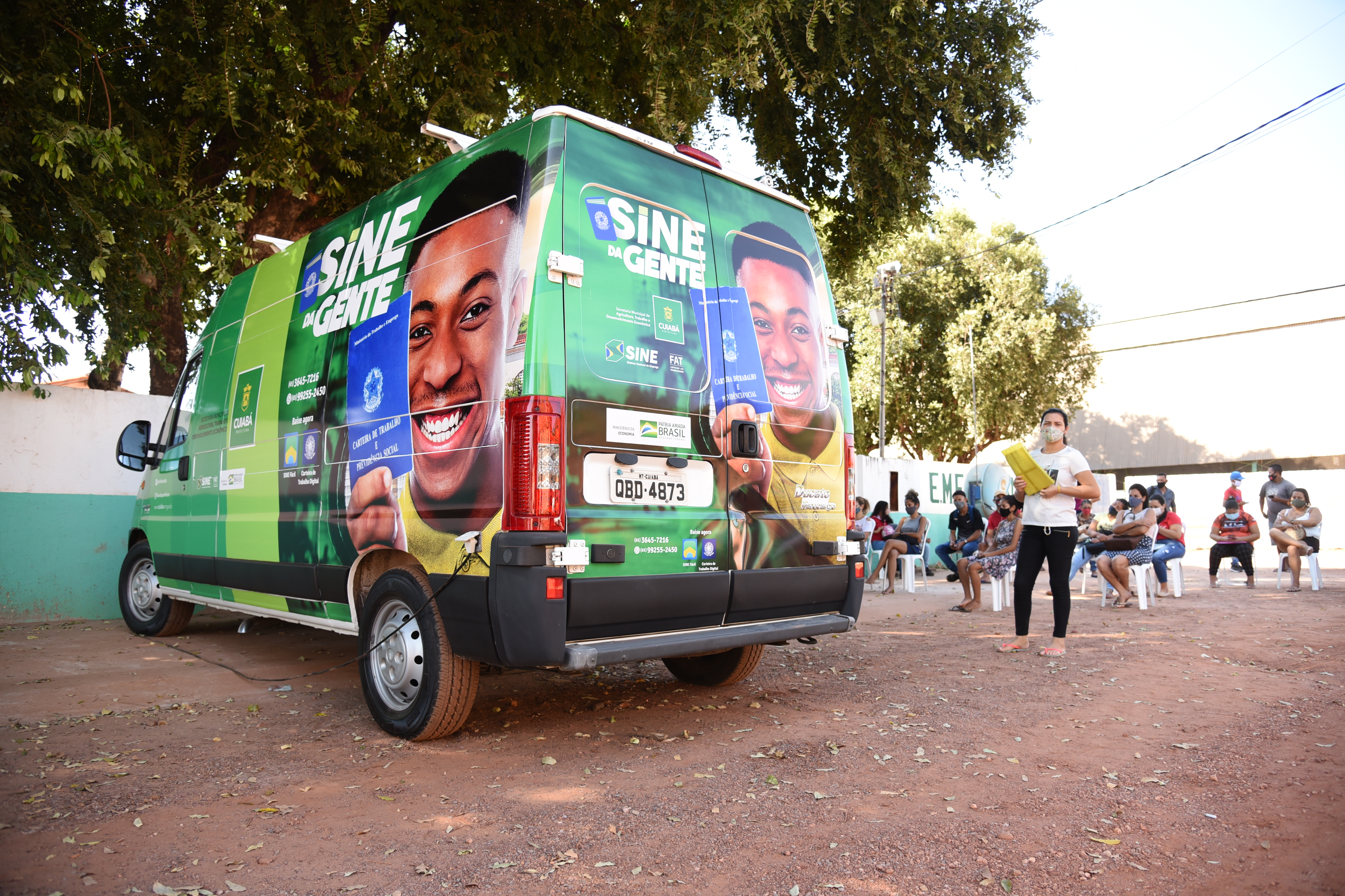 A ação Sine da Gente é executada pela Secretaria de Agricultura, Trabalho e Desenvolvimento Econômico e integra o Pra Frente Cuiabá, um programa multissetorial executado também pela Pasta em parceria com Núcleo da primeira-dama Márcia Pinheiro, Secretaria de Assistência Social, Direitos Humanos e da Pessoa com Deficiência e Secretaria da Mulher.