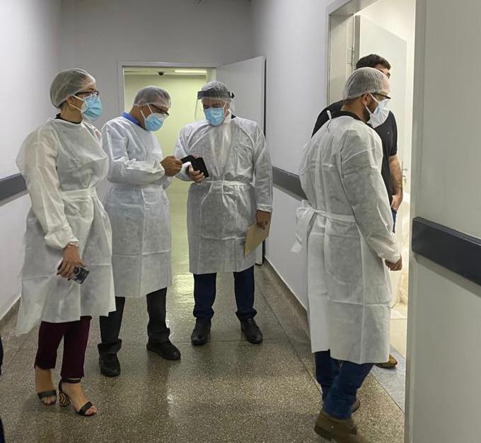 Com a devida paramentação, os vereadores foram conduzidos por todo o hospital, que desde março de 2020 está atendendo exclusivamente pacientes de COVID-19. Visitaram todas as salas de UTI e enfermarias, tanto adultas quanto pediátricas e viram de perto o atendimento aos pacientes confirmados e suspeitos com a doença.