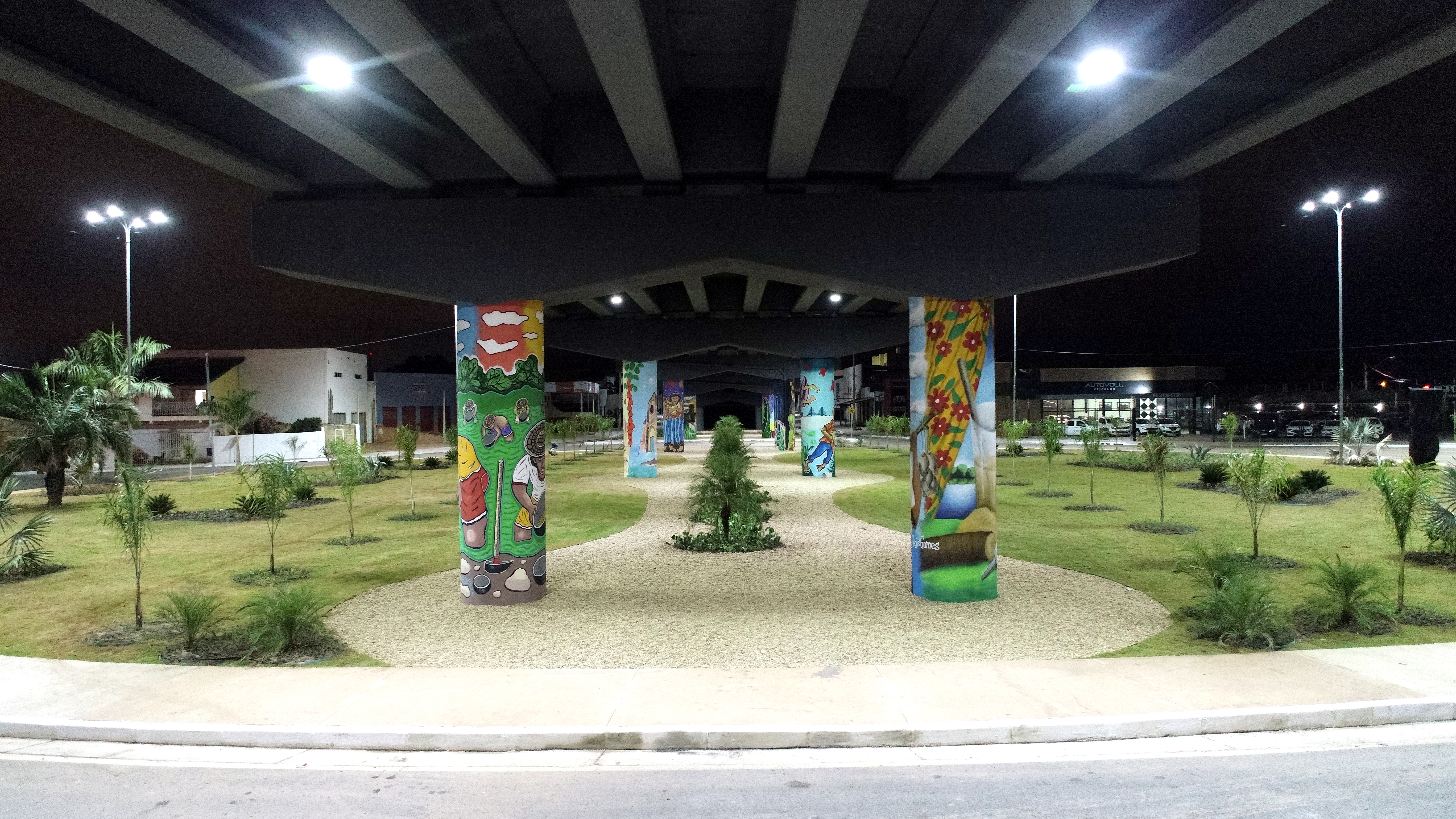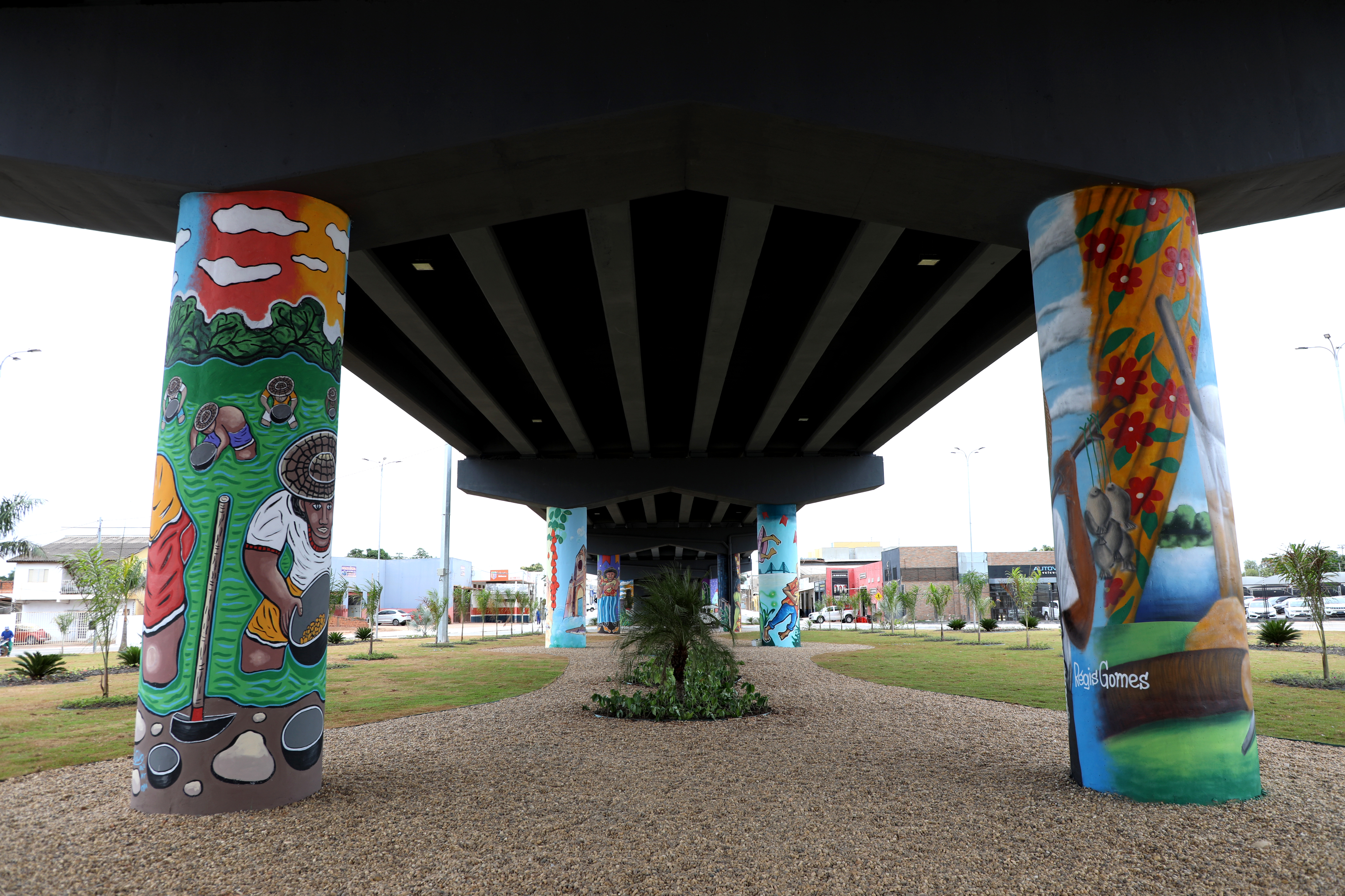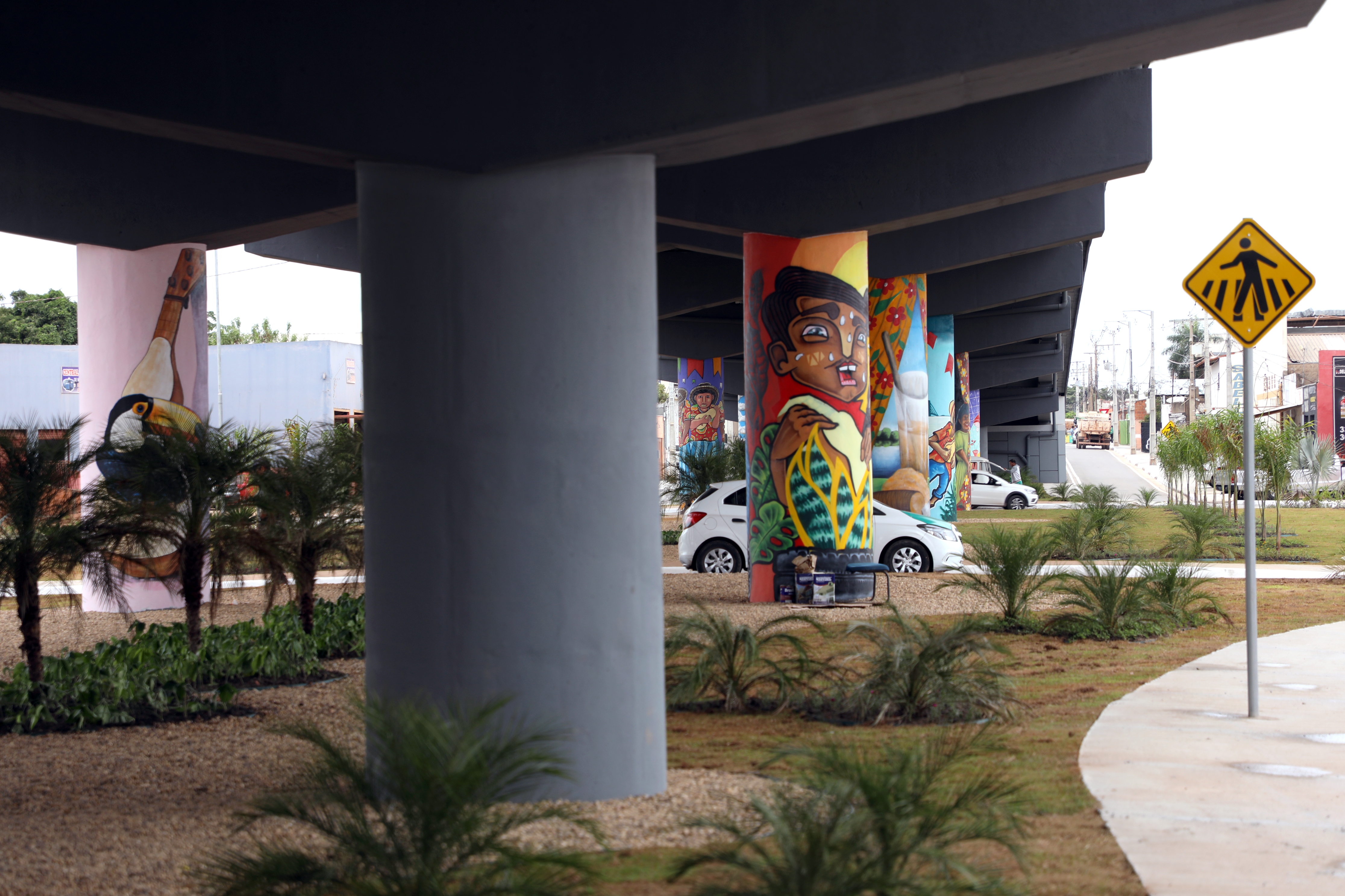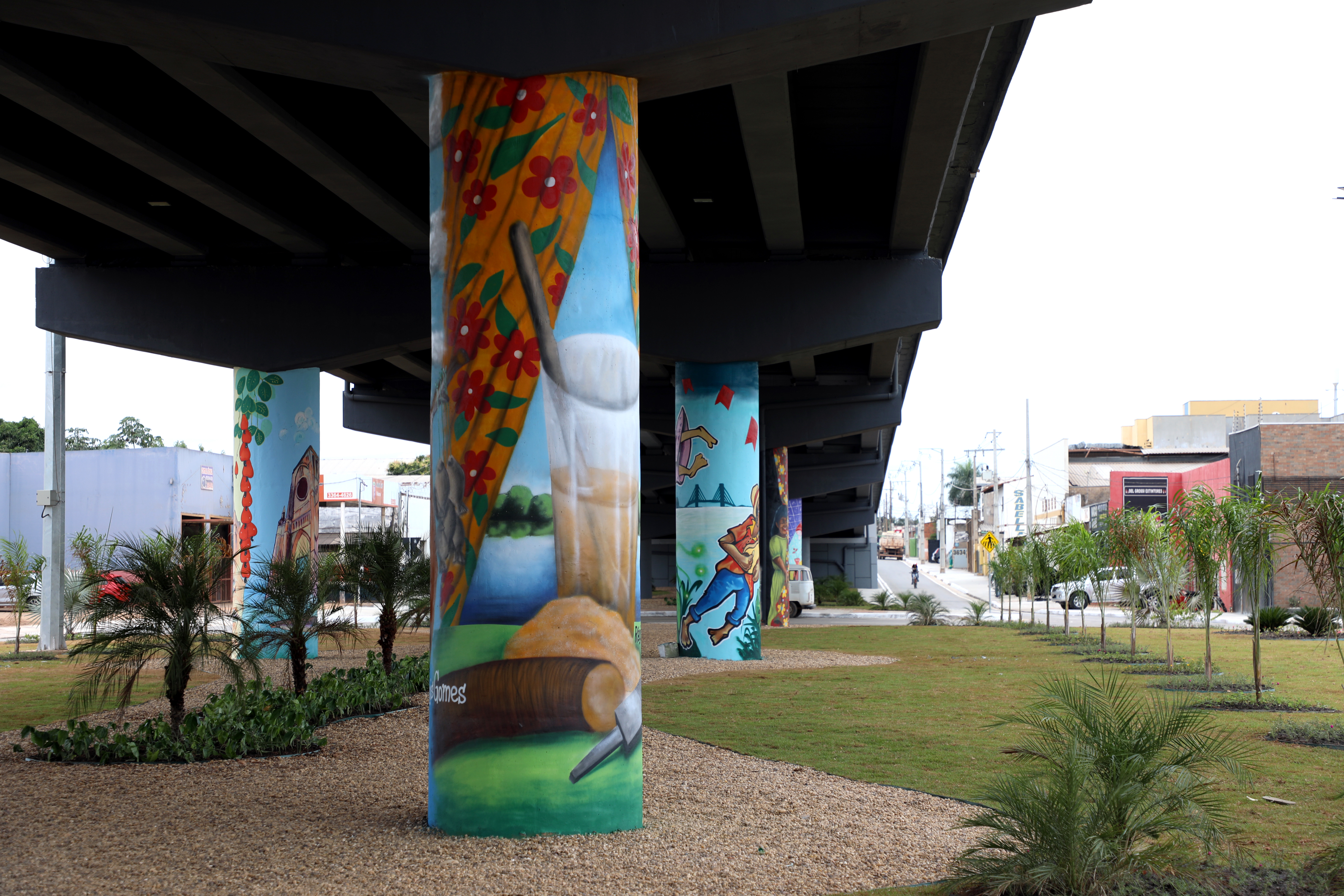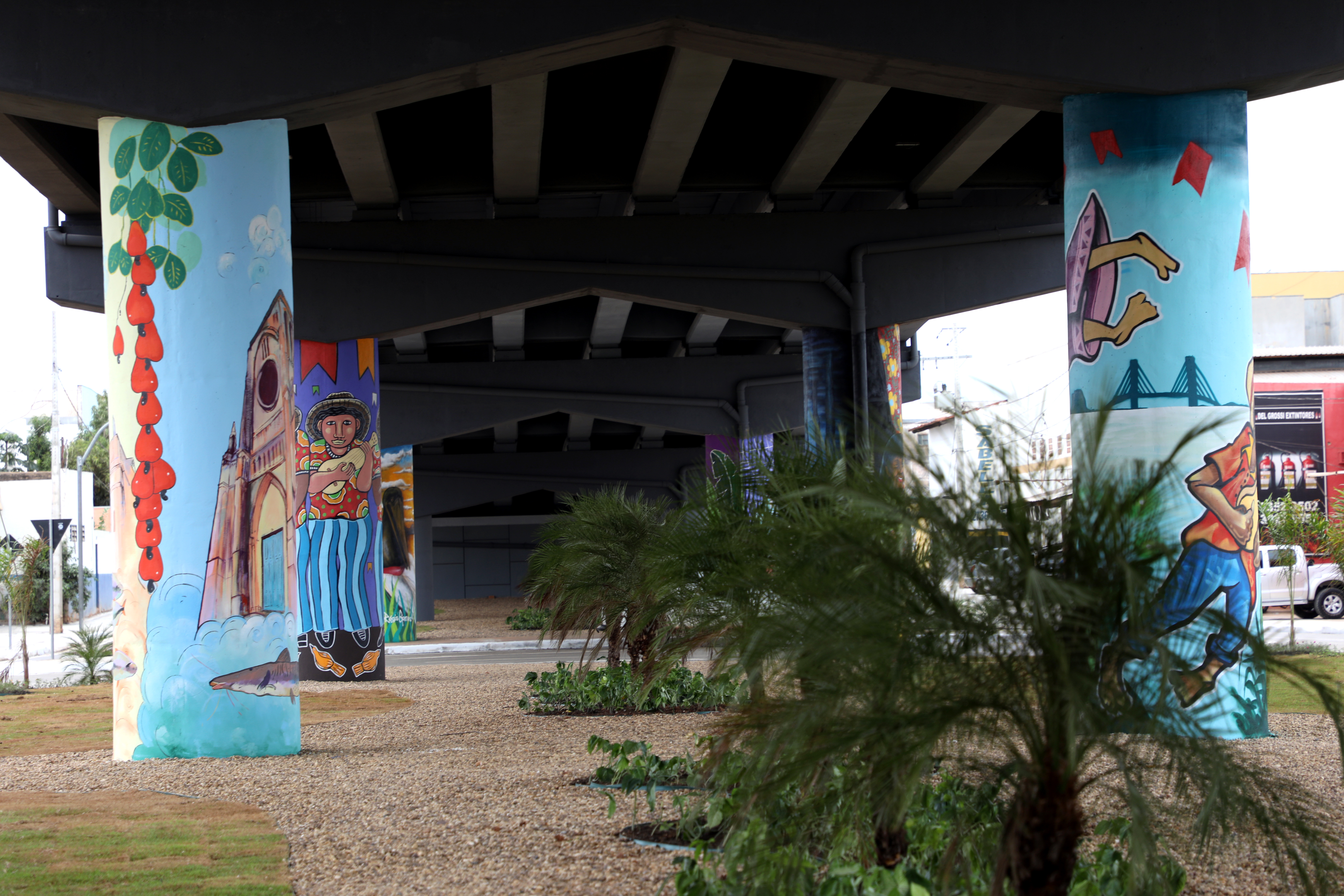 Também foi realizada a pintura dos pilares de sustentação com elementos símbolos da nossa Capital. Participaram desse projeto os seguintes artistas plásticos regionais: Fred Fogaça, participam desse trabalho os artistas Régis Gomes, Benedito Silva, Zilda Barradas, Babu 78, Vitório “Nico” e Sérgio Venny.