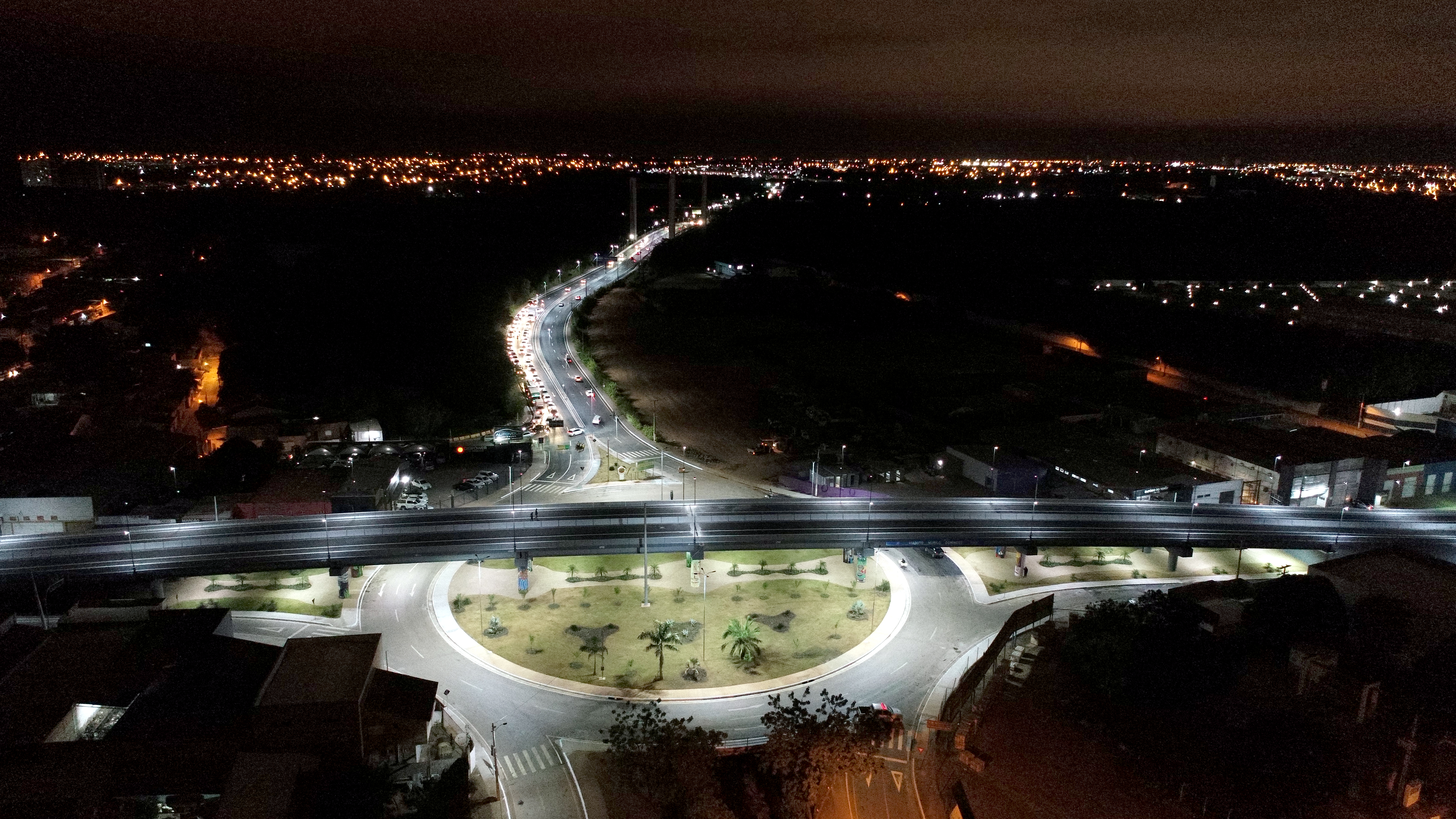 Viaduto possui iluminação em LED e vai duplicar a capacidade em cruzamento da Av. Beira Rio com a Ponte Sérgio Motta; Veja fotos