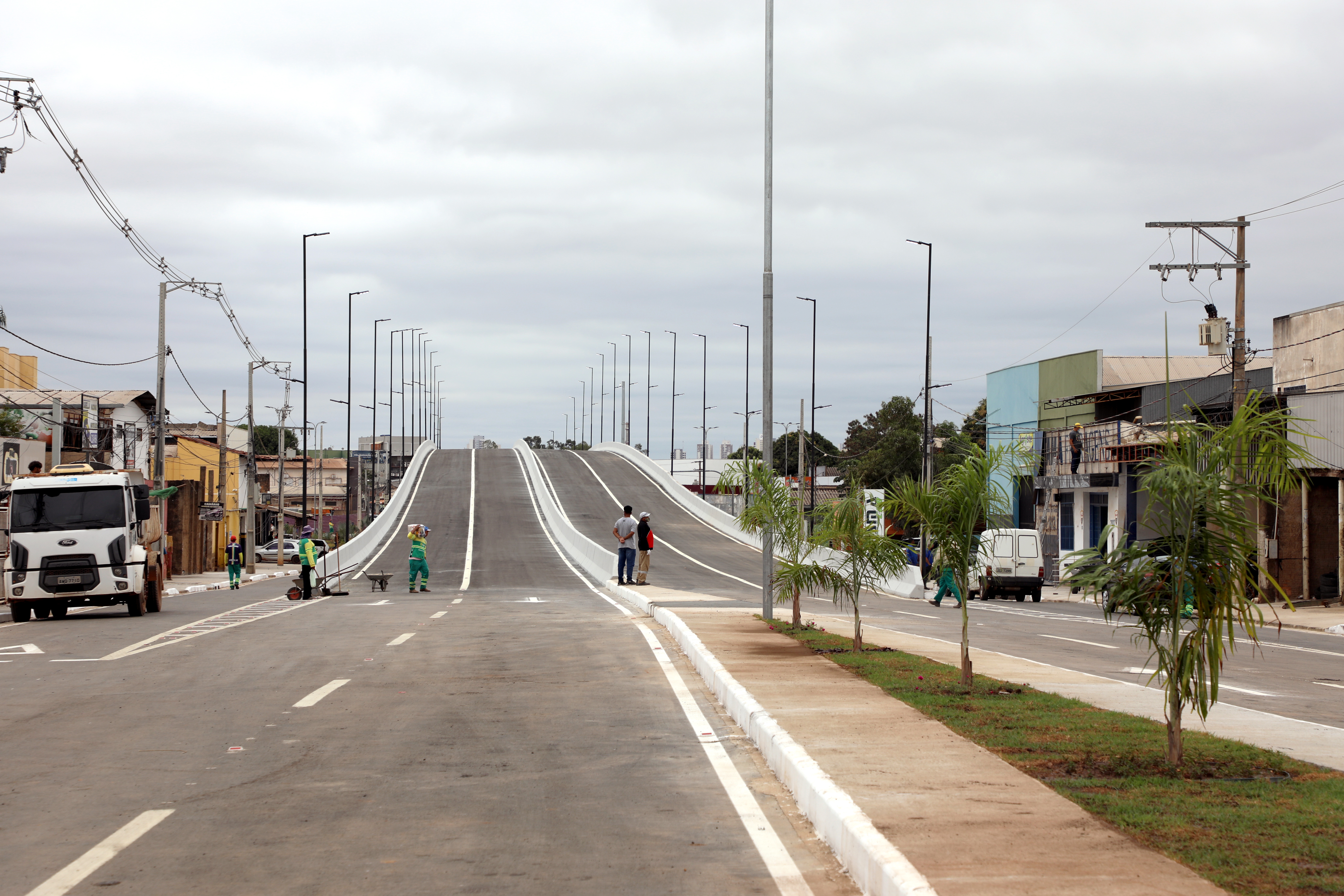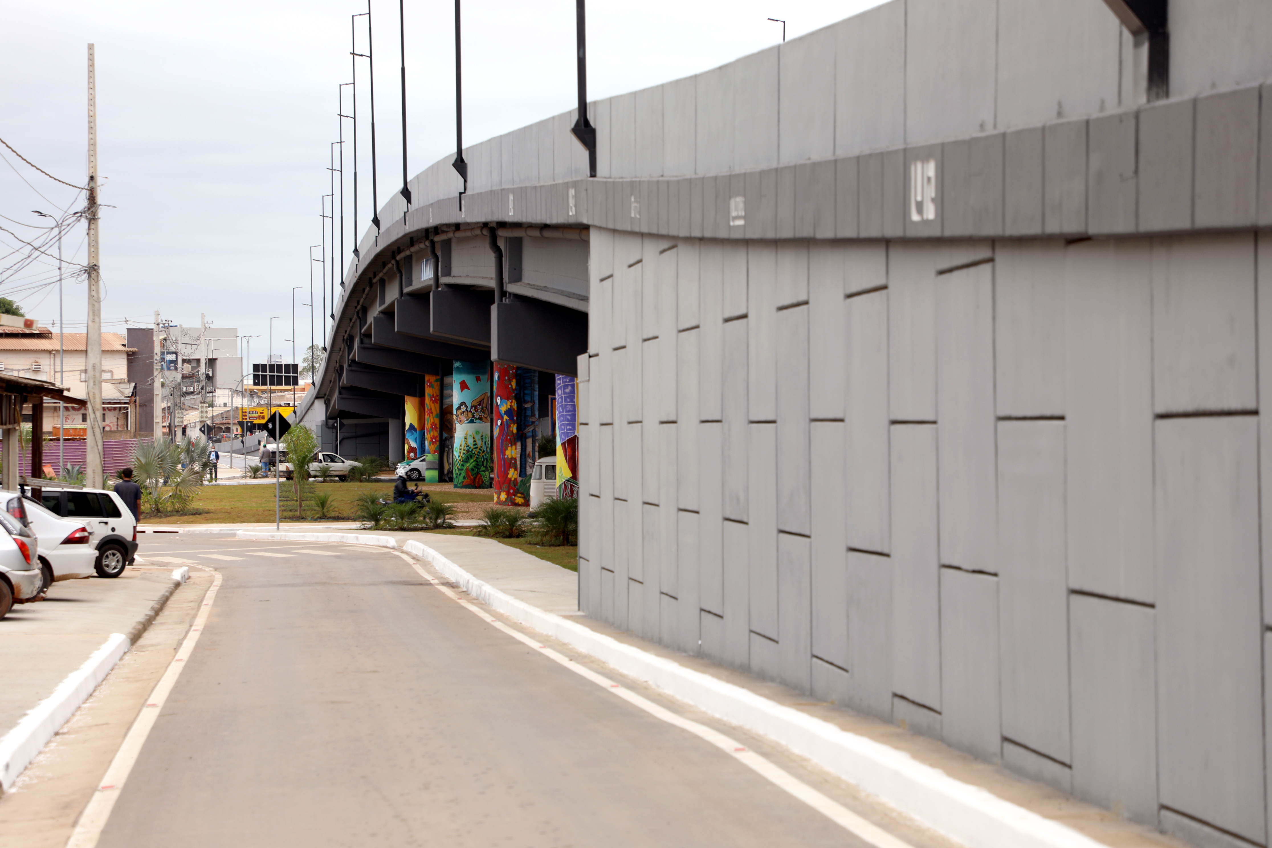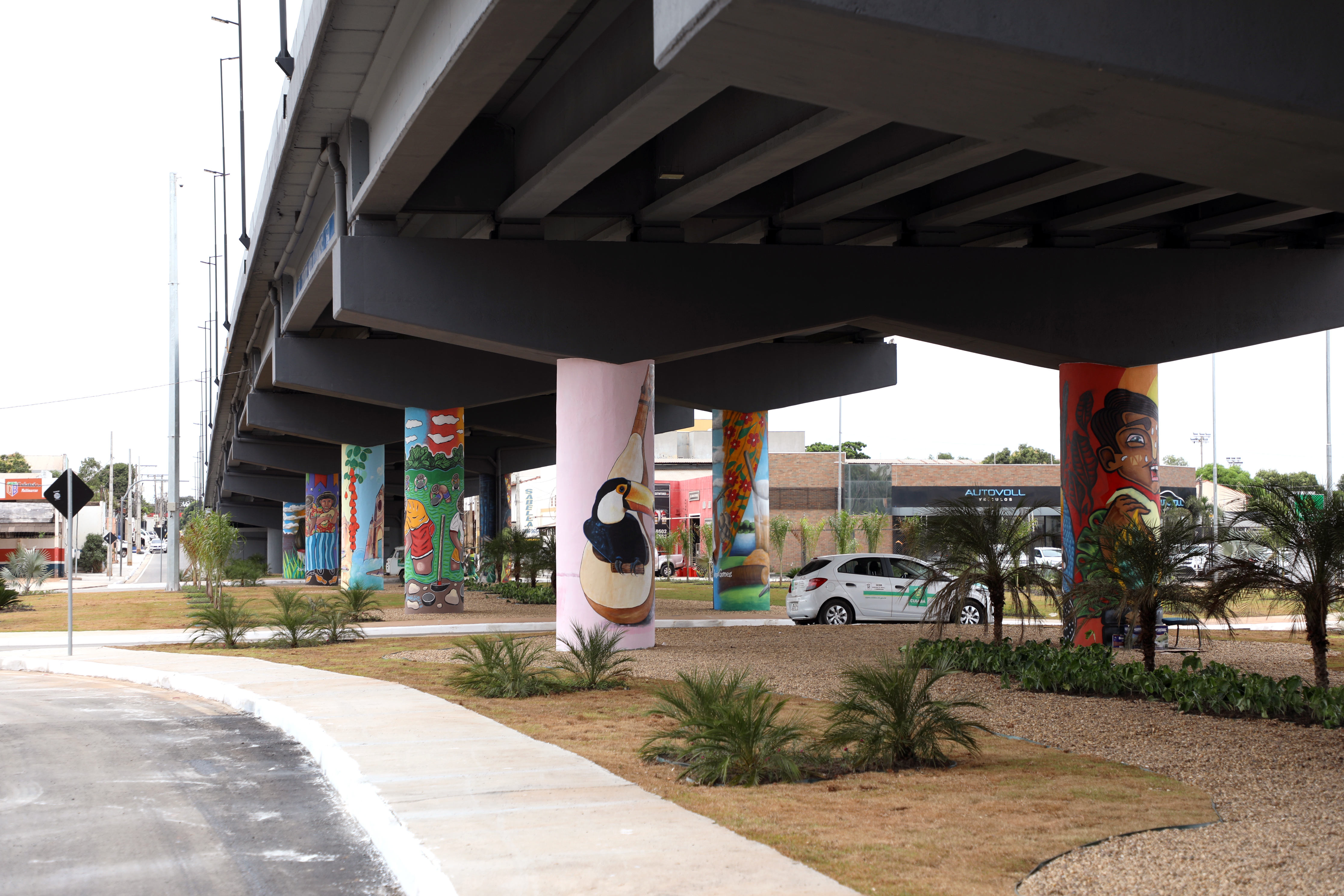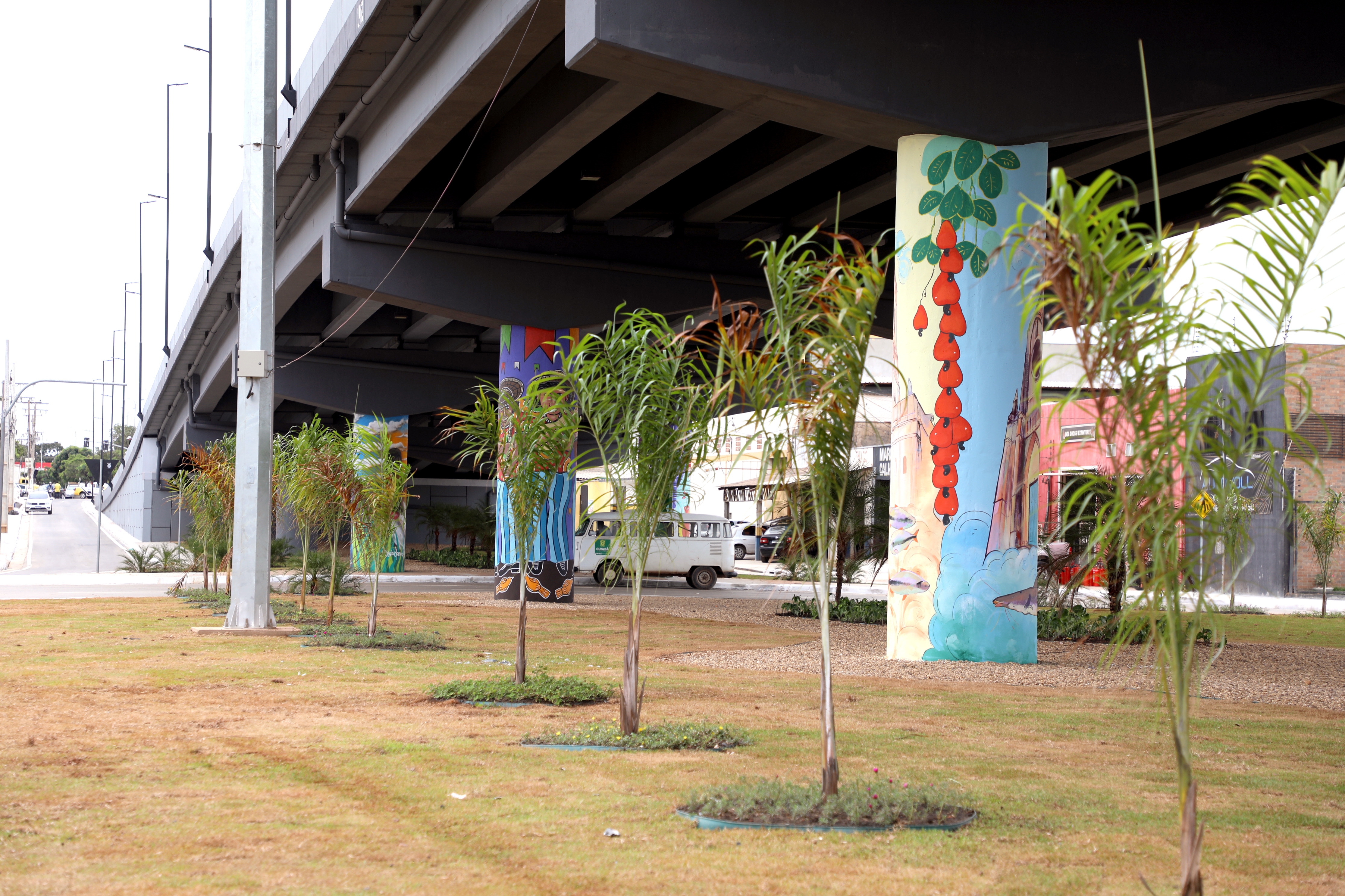 O trabalho contou com plantio de grama, palmeiras e outras espécies de plantas ornamentais, que ajudam a deixar o visual do viaduto ainda mais contemplativo.