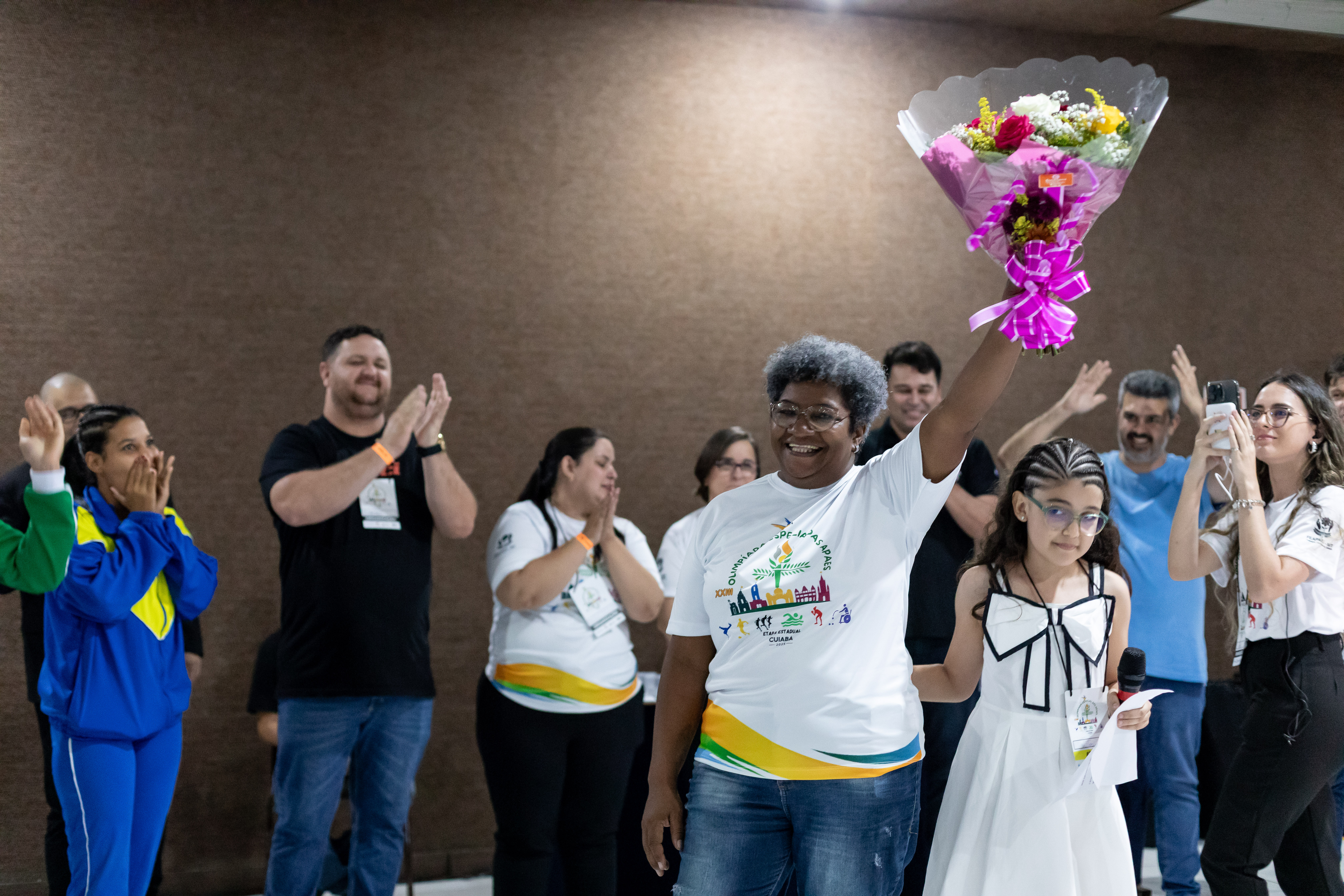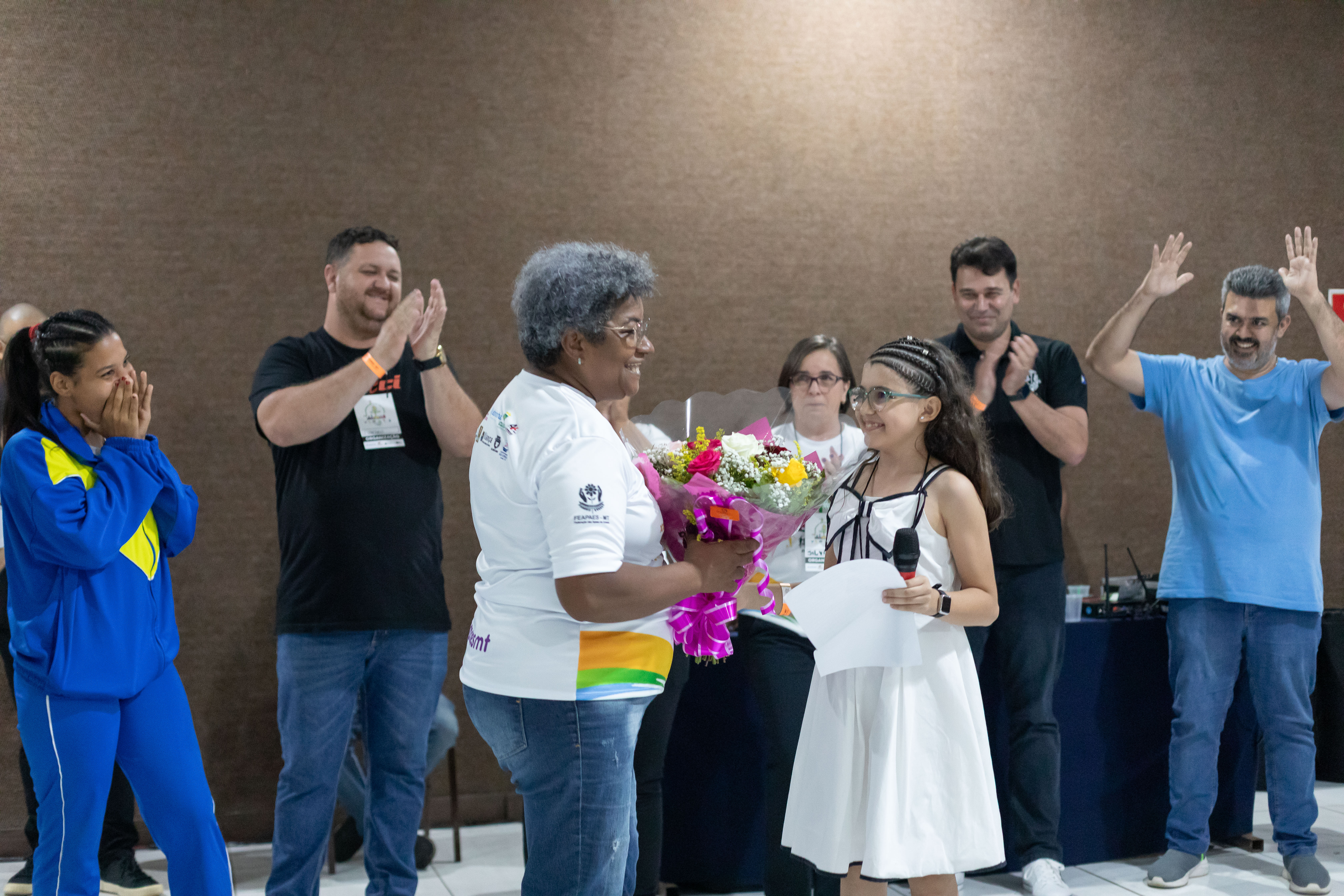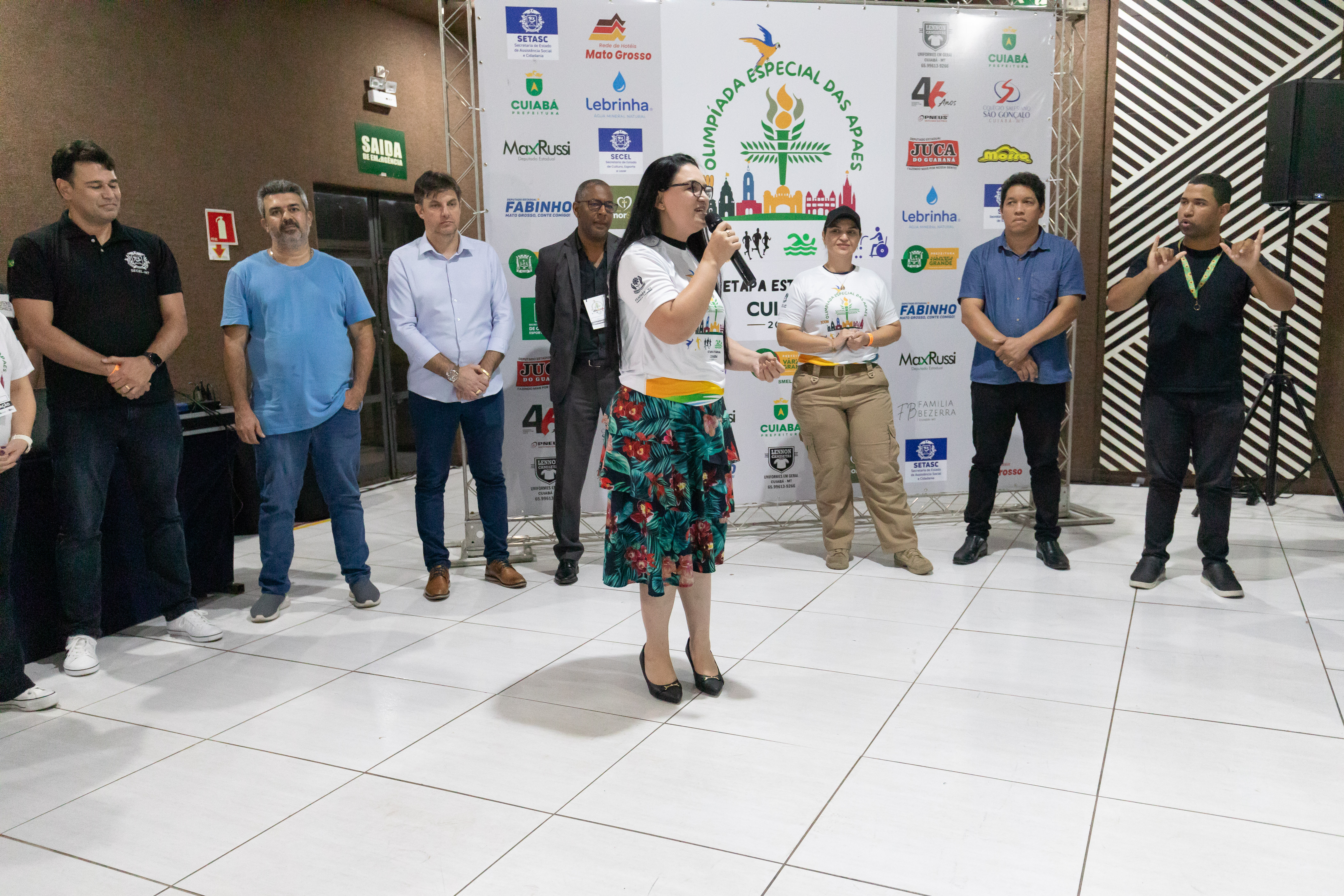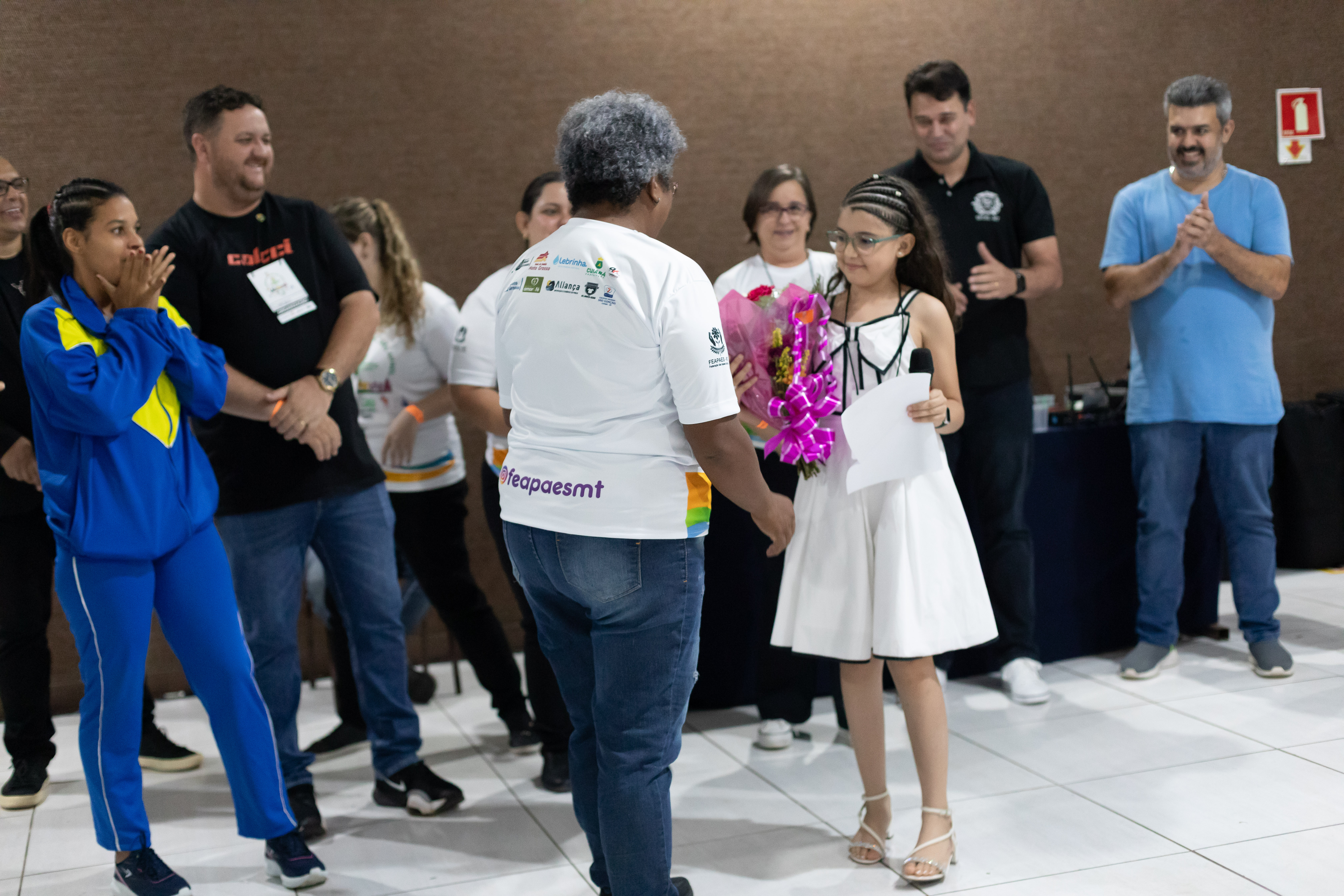 Também participaram da abertura o presidente da APAE Cuiabá, Leonardo Arruda; a presidente da FEAPAES-MT, Silvia Artal; e a homenageada com um buquê de flores, Cícera Araújo. A homenagem reconheceu sua luta, dedicação, coragem e trabalho à frente da APAE.