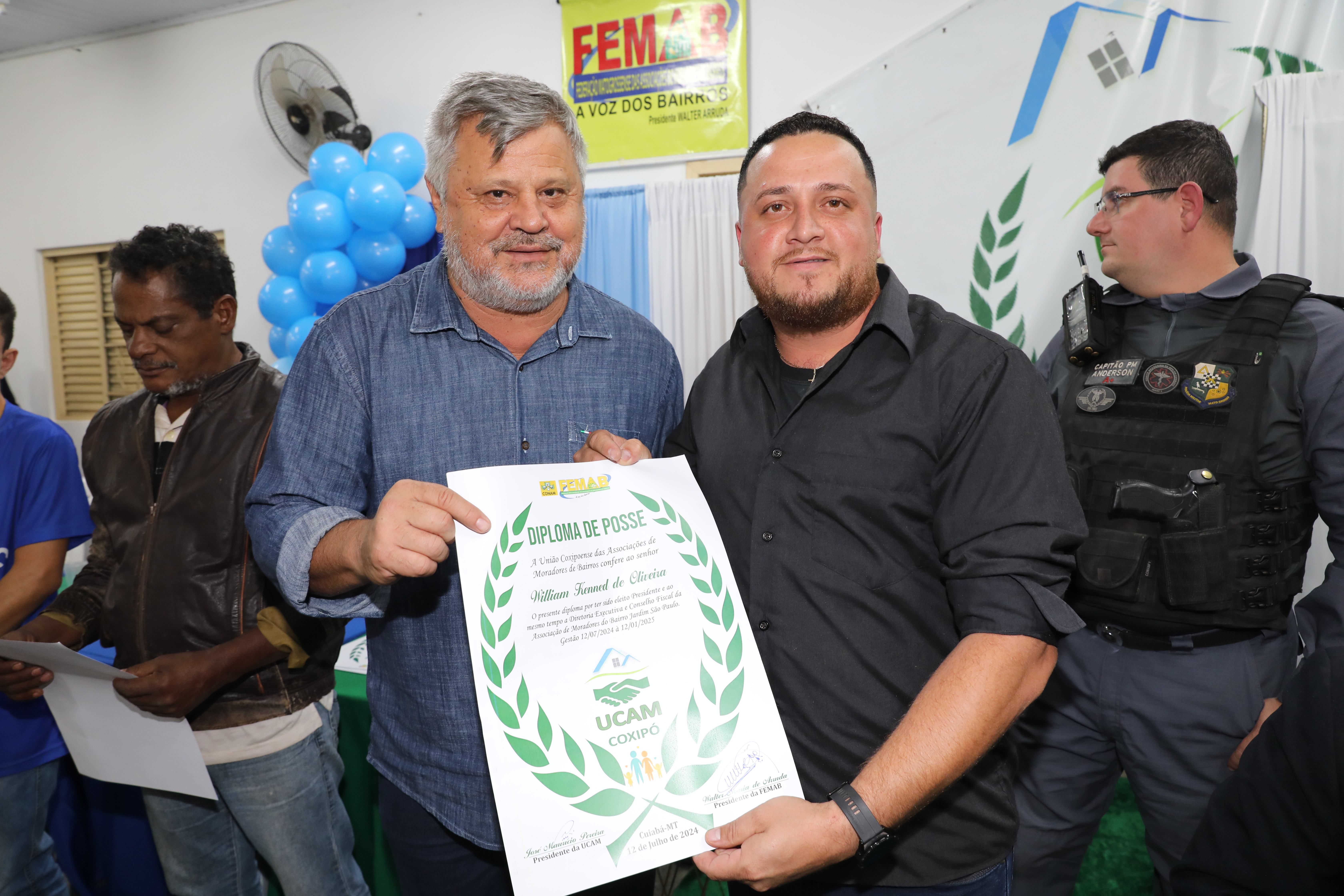 No ato, foram diplomados 80 presidentes de Associações de Bairros de Cuiabá, além da presença de representantes de outras 114 Associações de Moradores que não realizaram eleições no ano passado. A primeira-dama realizou a entrega dos títulos às mulheres eleitas, enquanto o vice-prefeito entregou os diplomas de posse aos demais presidentes de bairros. Na ocasião, também foi mencionada a construção da nova sede da UCAM, conduzida pela gestão de Emanuel Pinheiro, que está em fase final. Além disso, foi discutida a proposta de uma emenda parlamentar do deputado Emanuelzinho para equipar completamente a nova sede.