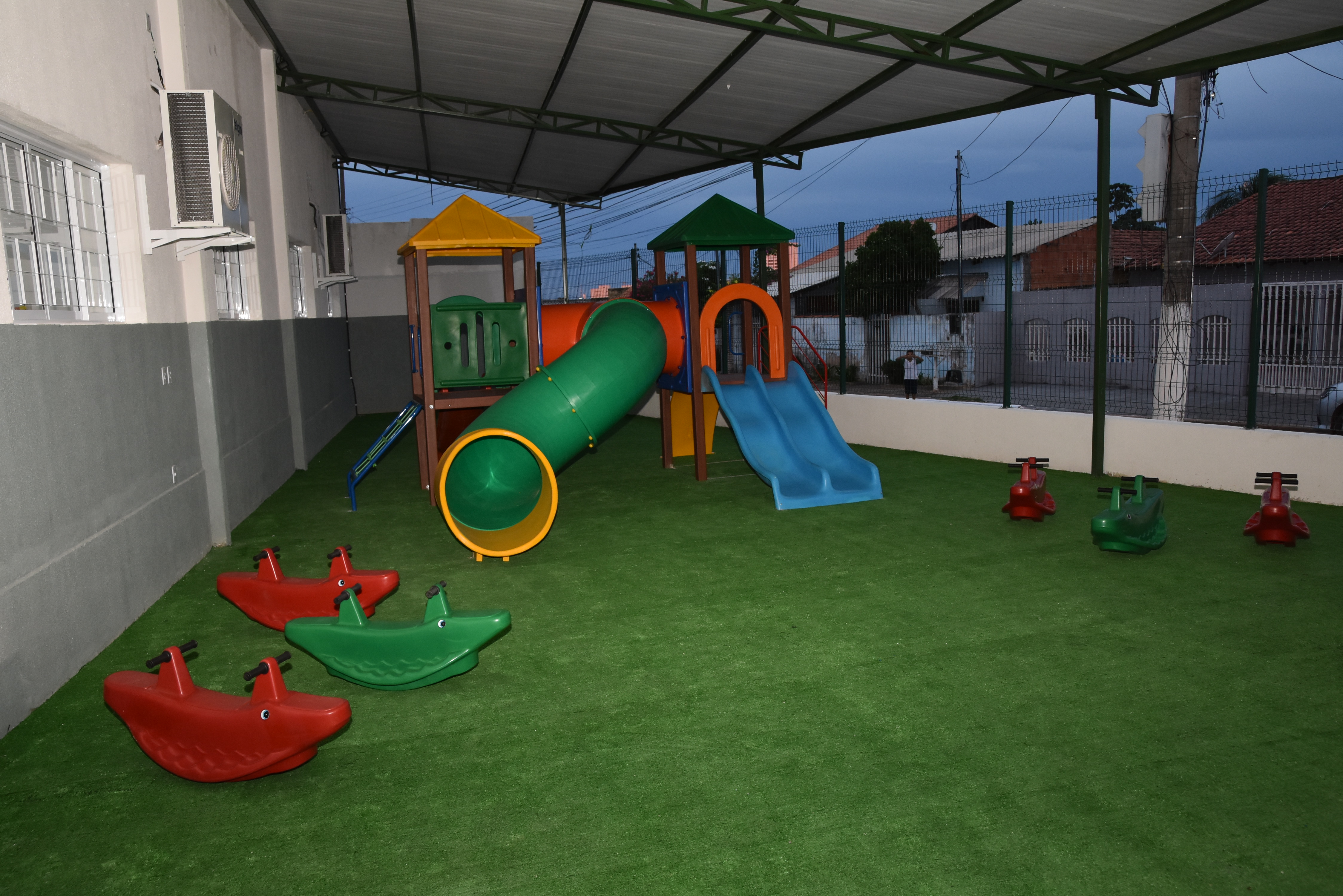 As crianças ganharam um parquinho com grama sintética, piscina de bolinhas e novos materiais pedagógicos.