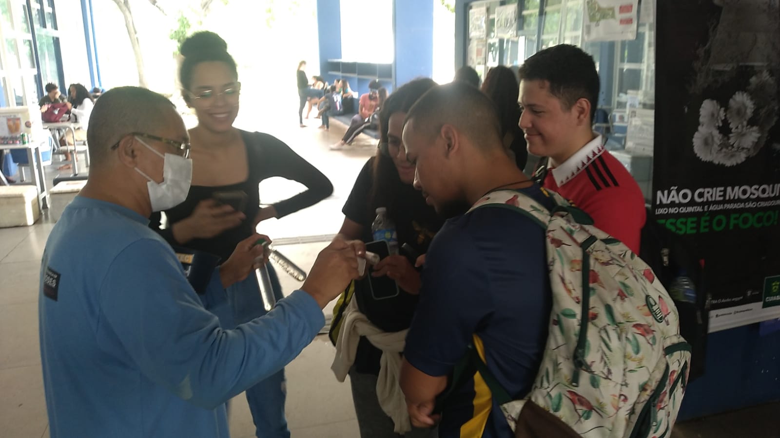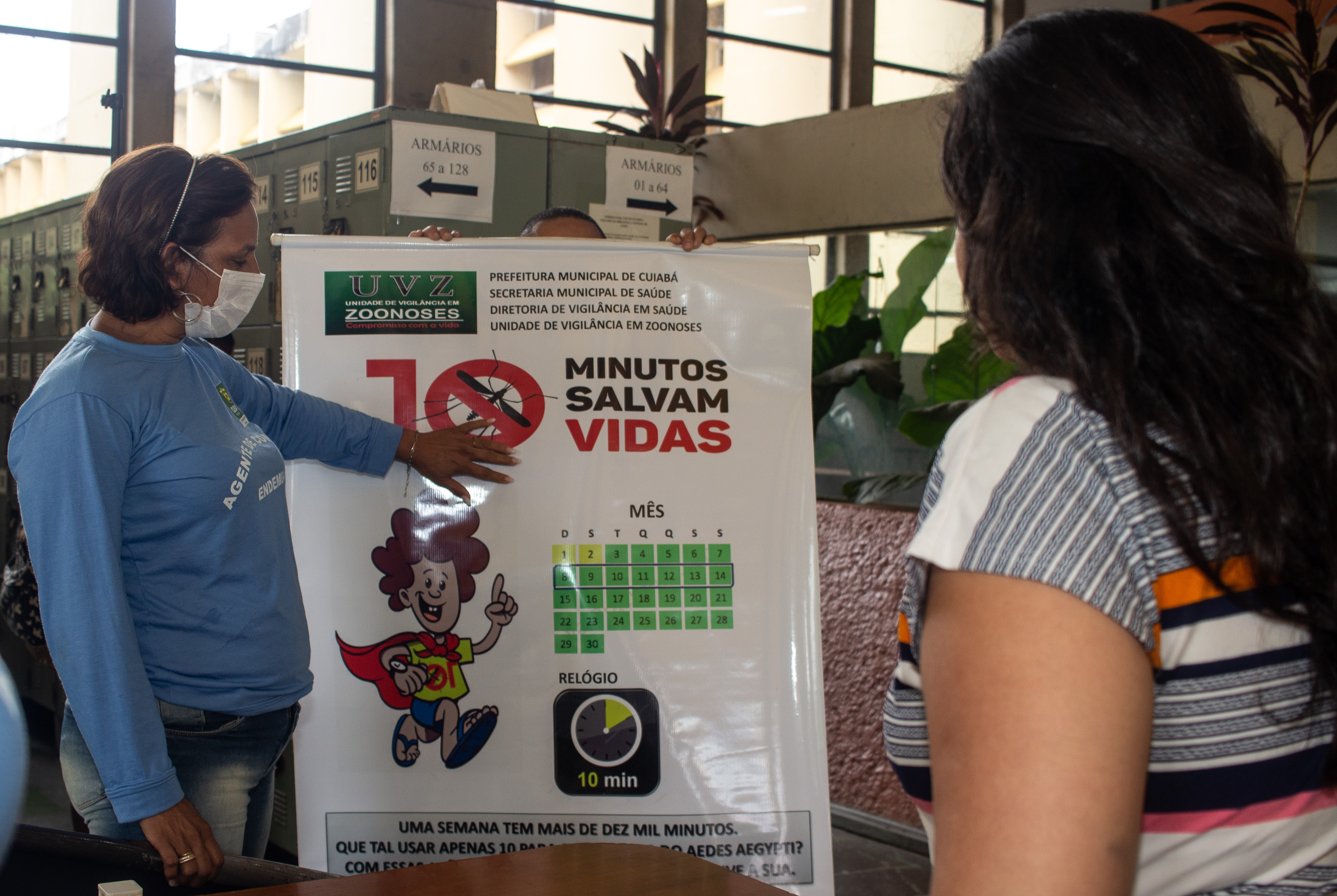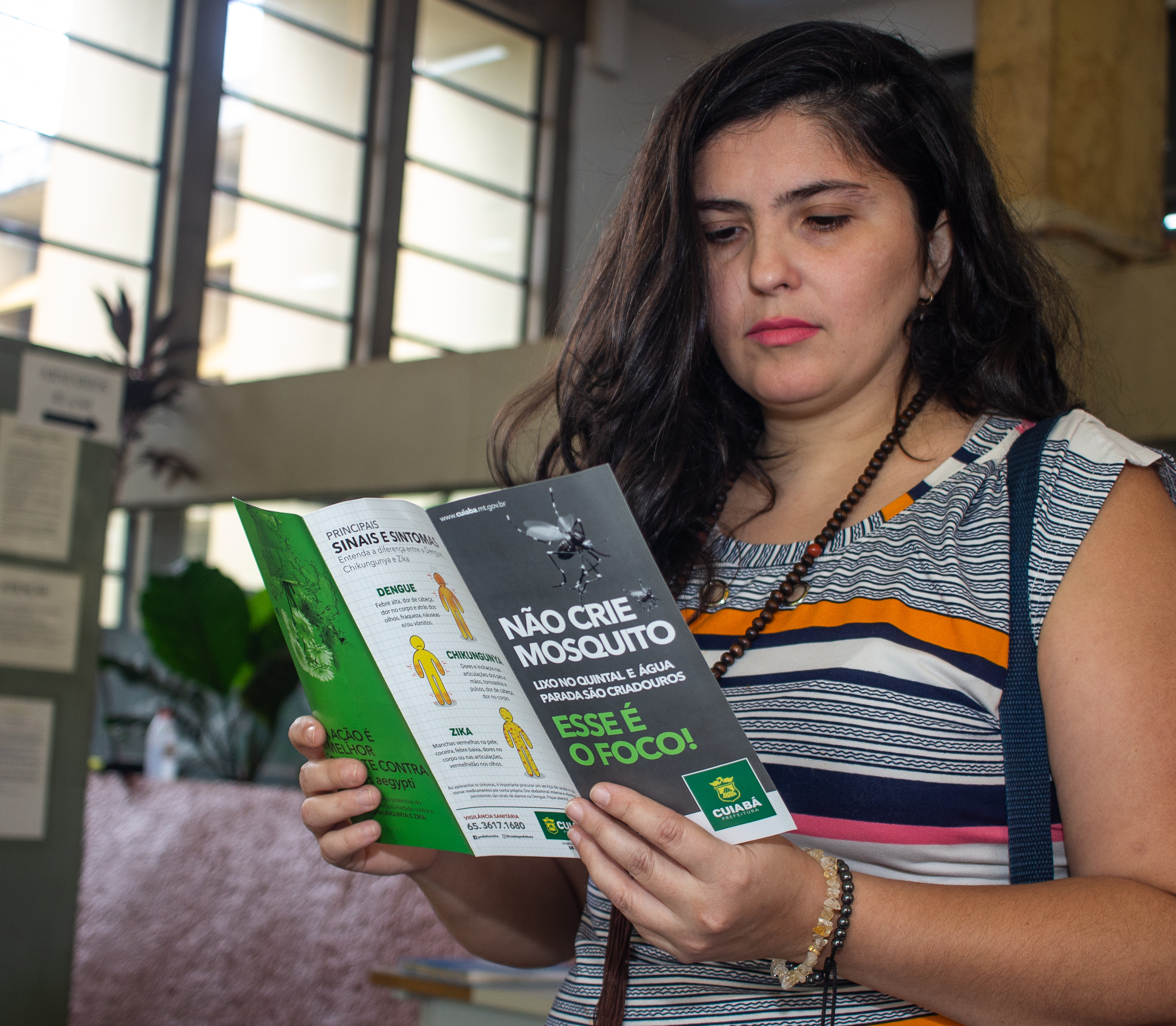 Mais de mil estudantes da Universidade Federal de Mato Grosso, funcionários da instituição e centenas de motoristas, receberam orientações sobre a proliferação e cuidados contra o mosquito Aedes aegypti, o 'mosquito da Dengue', na quarta-feira (23). O trabalho foi liderado pela Unidade de Vigilância em Zoonoses que mobilizou 35 Agentes de Combate de Endemias (ACE) durante todo o dia no Campus Universitário, na região do Coxipó. Panfletagem nas guaritas, distribuição de folders, visitas internas e externas nos blocos, arredores das quadras e uma mesa expositora sobre o assunto integraram a ação.