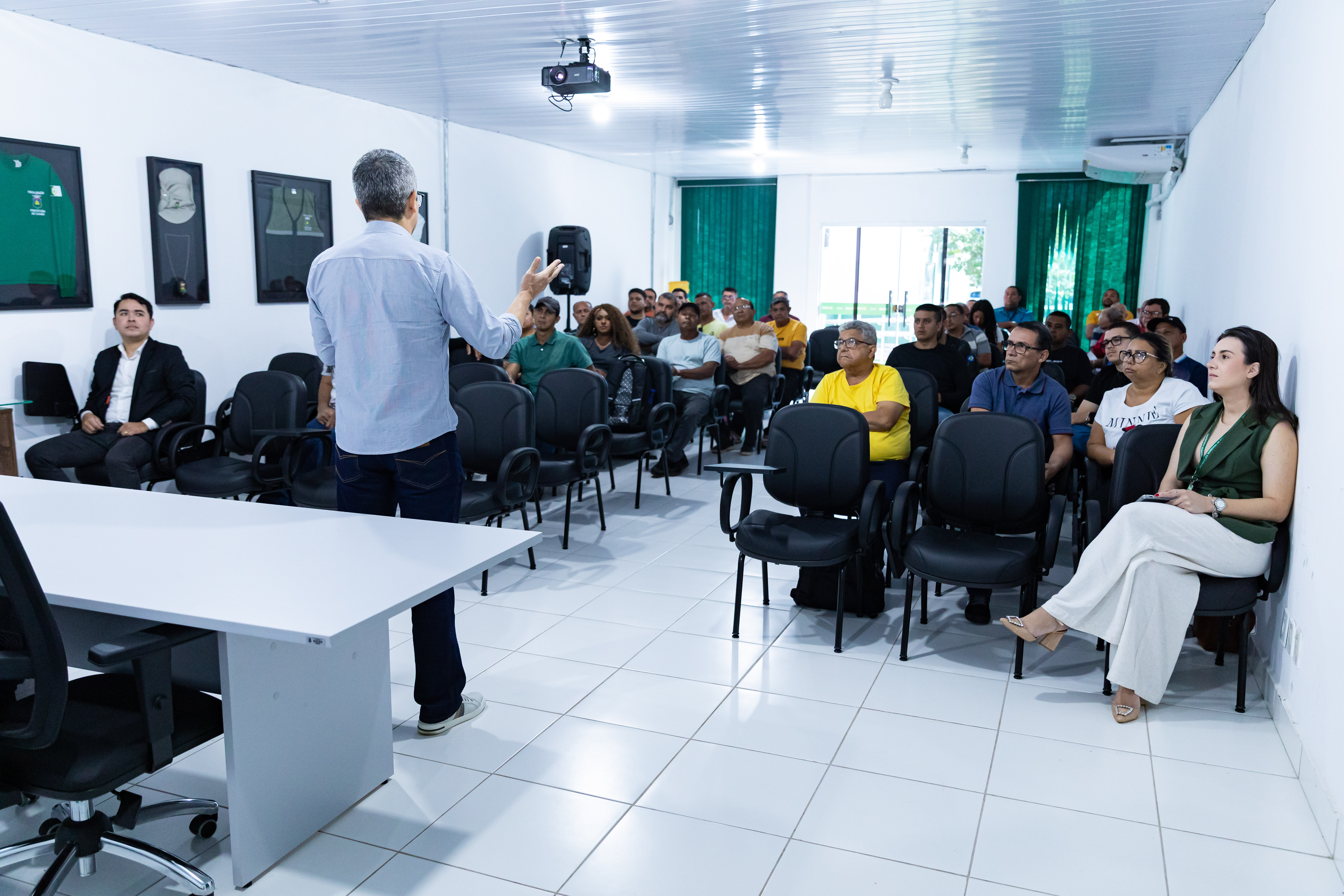 O diretor estratégico da Secretaria Municipal de Segurança Pública, Coronel da Polícia Militar Zacarias Vitalino, foi o responsável em realizar uma palestra a respeito de técnicas de segurança em ambiente coletivo e outros procedimentos.