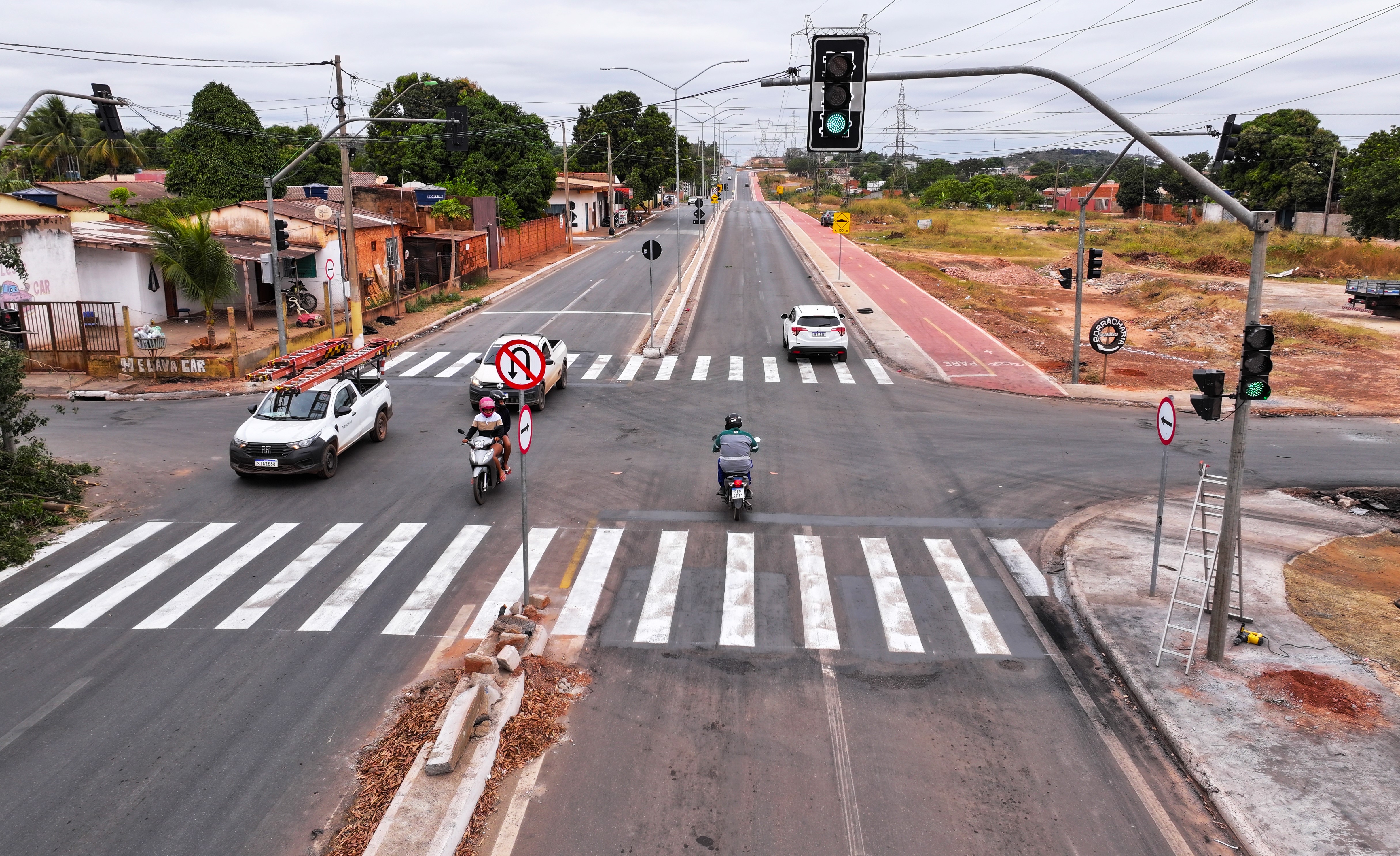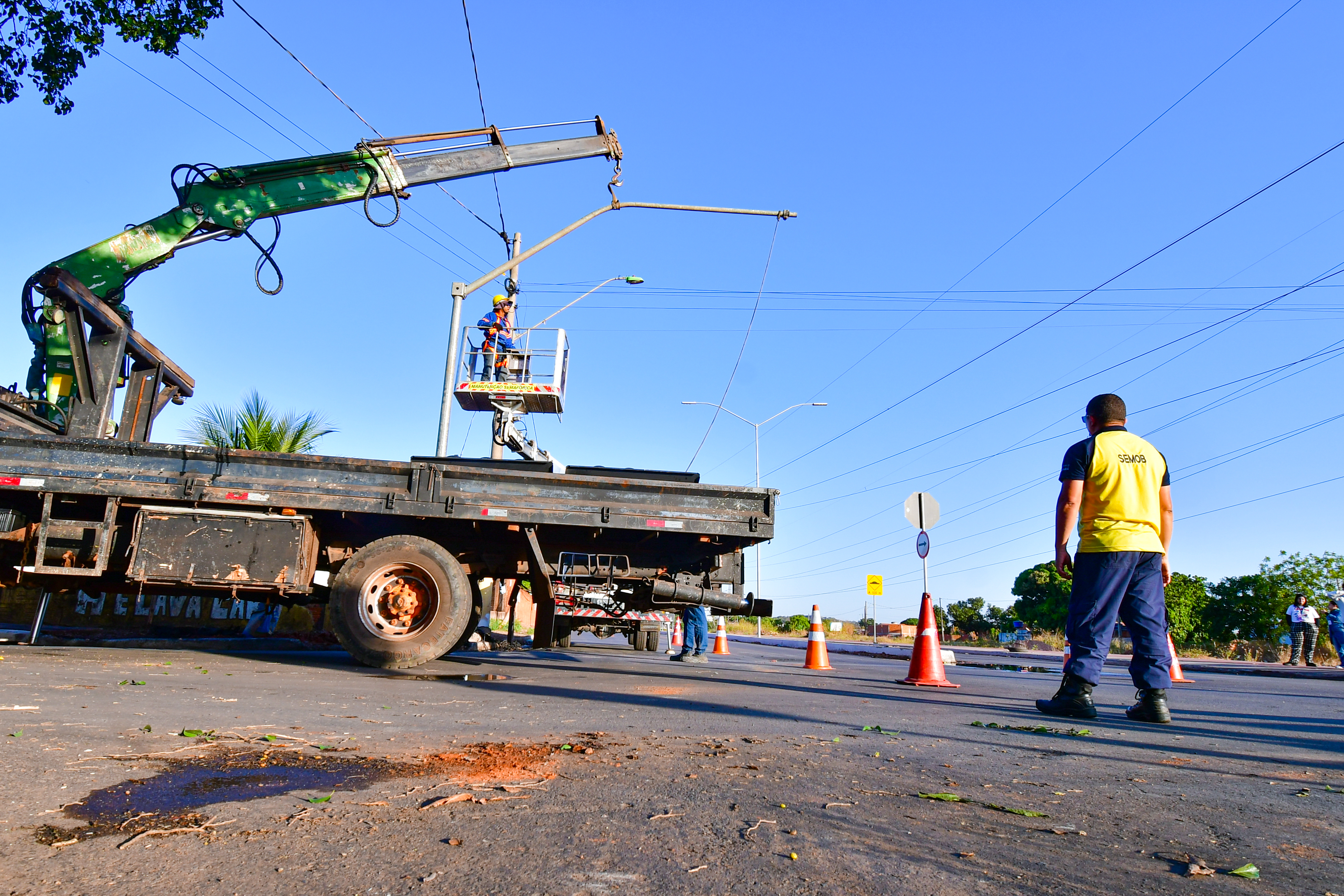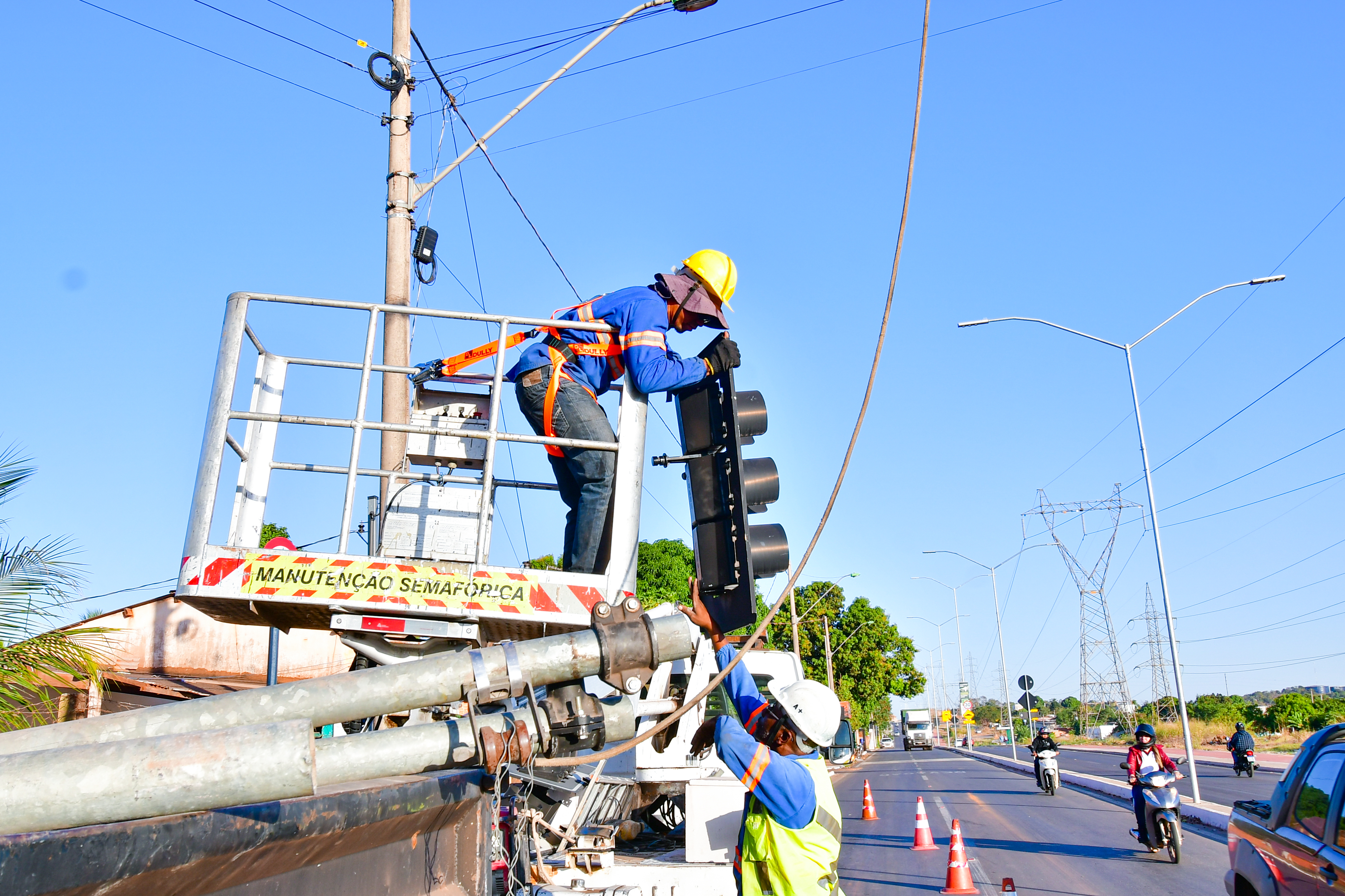 Os trabalhos iniciaram na tarde de quarta-feira (10) com a instalação das colunas e dos braços de um conjunto de quatro semáforos, dois de cada lado da via. Já na quinta, foi realizada a instalação dos cabos de energia nos sinalizadores.