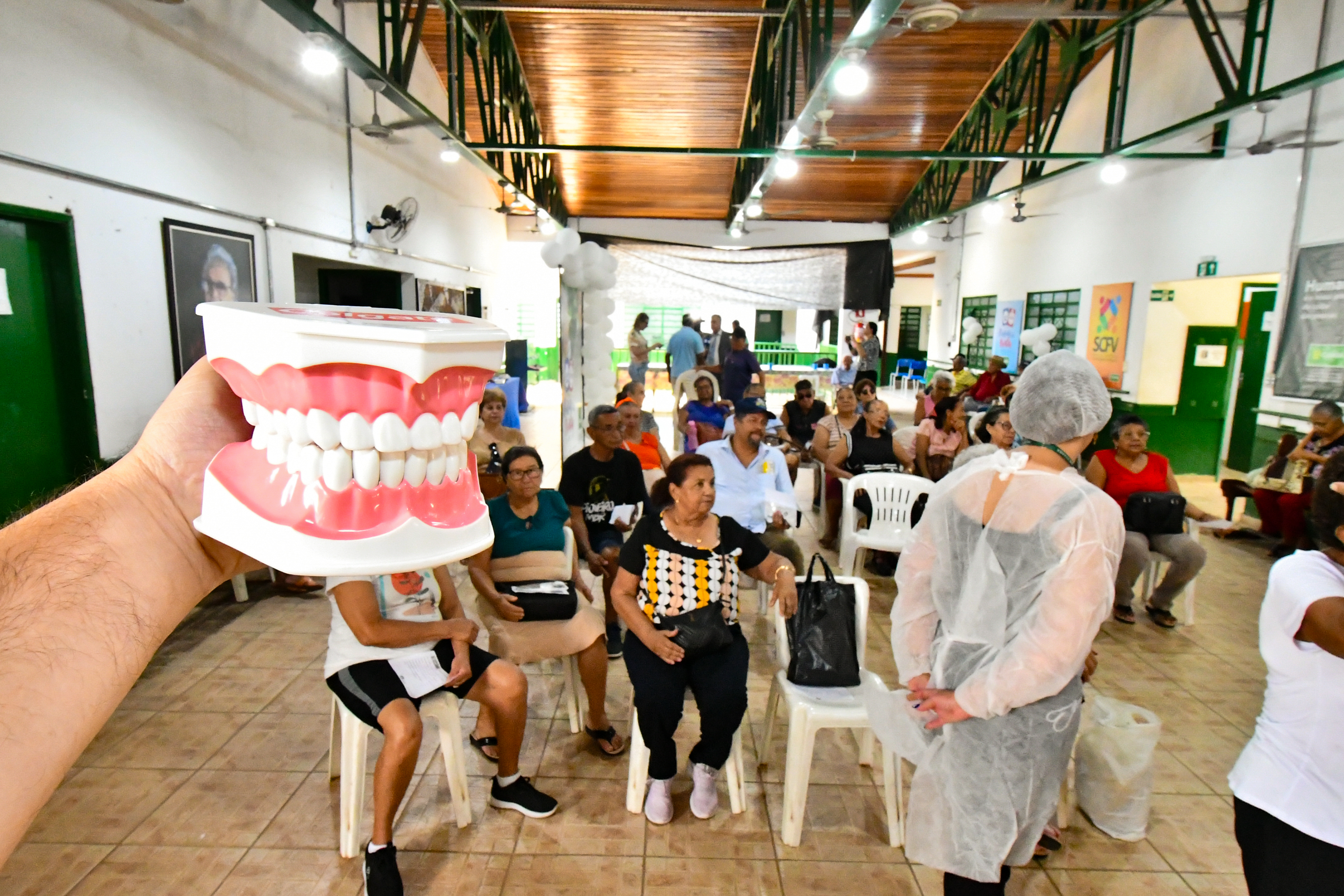 Os idosos assistidos pelos Centros de Convivência da Prefeitura de Cuiabá receberam, nesta terça-feira (19), atendimentos voltados à saúde bucal. Desde as primeiras horas da manhã, as unidades estavam cheias de idosos aguardando atendimento. A ação foi uma iniciativa conjunta entre as Secretarias Municipais de Assistência Social, Direitos Humanos e da Pessoa com Deficiência e Saúde, por meio do projeto "Ação em Saúde Bucal - Viva a Vida na Melhor Idade". A ação aconteceu simultaneamente nos quatro Centros de Convivência: Padre Firmo, João Guerreiro, Maria Ignês e Aidee Pereira. O objetivo foi facilitar o acesso dos idosos aos serviços de saúde bucal, destacando a importância da higiene oral e da prevenção de doenças.