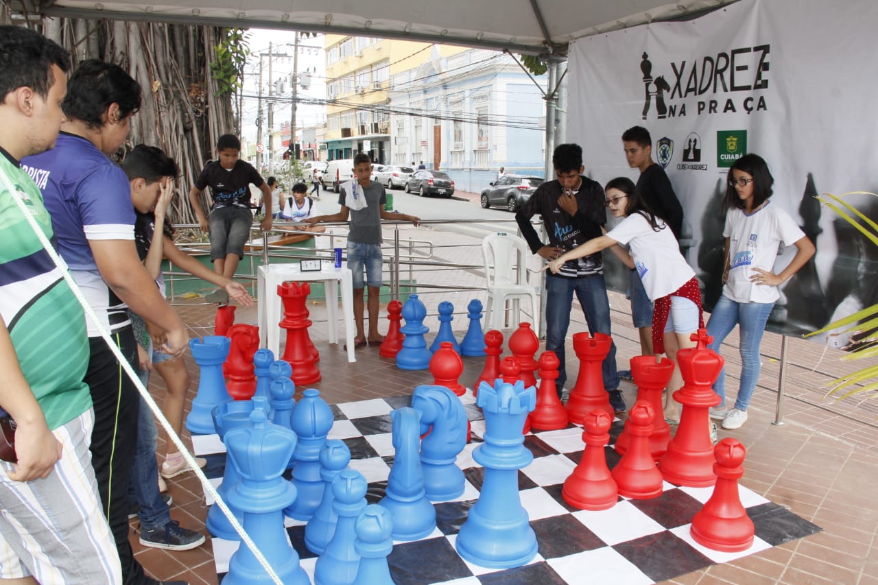 A primeira edição do projeto Xadrez na Praça contou com a participação de cerca de 130 pessoas. O evento aconteceu no último sábado (09), na Praça Alencastro, teve em sua programação oficinas e um torneiro entre escolas cuiabanas e várzea-grandenses em um tabuleiro gigante. As atividades foram realizadas por meio do Clube do Xadrez, coordenado pela Prefeitura de Cuiabá em parceria com a Federação Mato-grossense de Xadrez.